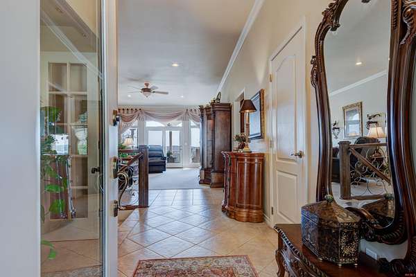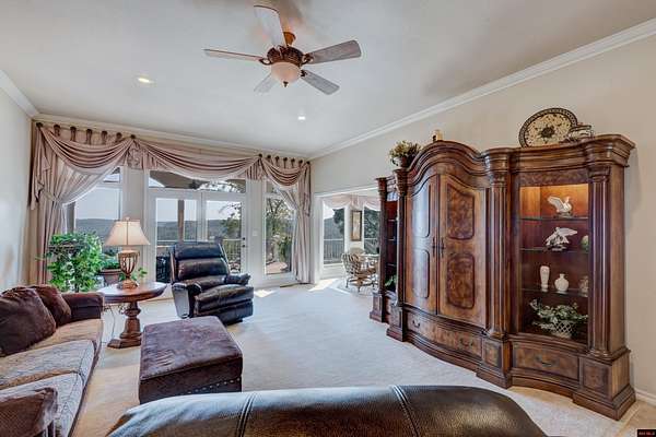 Italian-Inspired Elegance Overlooking the Famous White River Welcome to this stunning 4,449 sq ft estate offering panoramic views of the iconic White River. Situated on approximately 3 acres m/l, this custom-built 5-bedroom, 3-bathroom home blends luxury with functionality. Built in 2005 and rich with Italian-inspired design, you'll find hand-crafted details throughout, from cherry cabinets and granite countertops to finely manicured landscaping. The lower level features a spacious family area-ideal for separate living quarters-- plus the convenience of two laundry rooms. Enjoy expansive outdoor patios perfect for entertaining or relaxing in the serene Ozark setting. A 32x32 detached shop adds space for hobbies or storage. This one-of-a-kind property combines timeless beauty, space, and views in a truly exceptional location. A must-see!