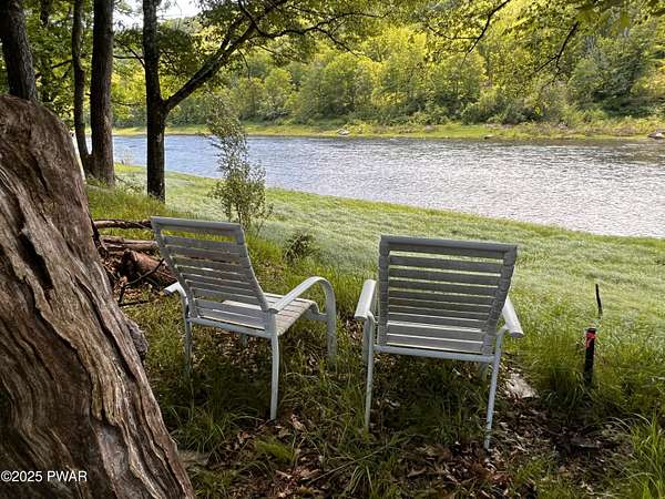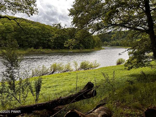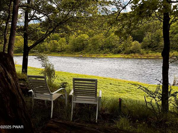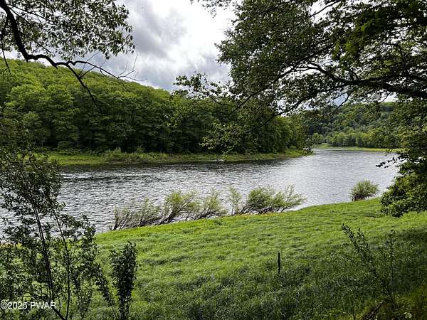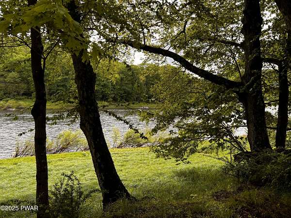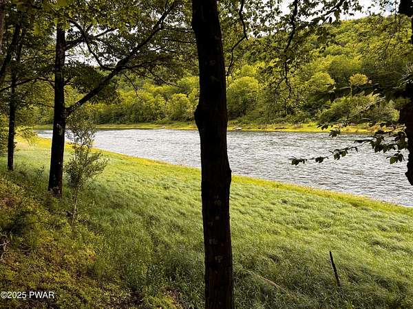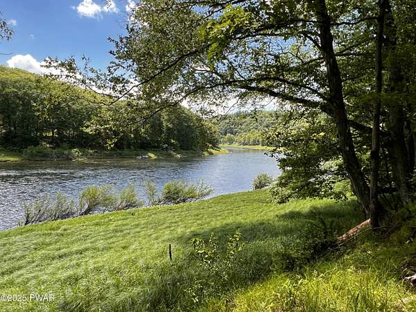 Est $2,968/moUpper Delaware RIVERFRONT year round home in a pristine location. Within minutes to the hot town of Narrowsburg, New York where you will find fine dining and small shops. One story ranch style home featuring 3 bedrooms, 2 full baths, attic fan, wood floors, wood stove, attached (2) car garage. includes older mobile home.2.16+- acres total. Beautiful lawn with mature trees.