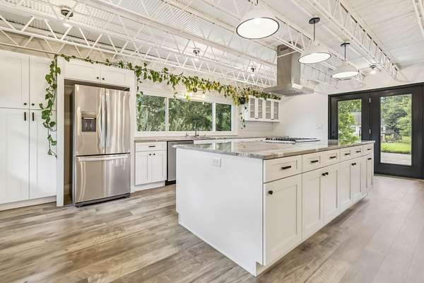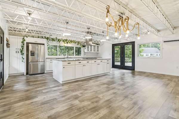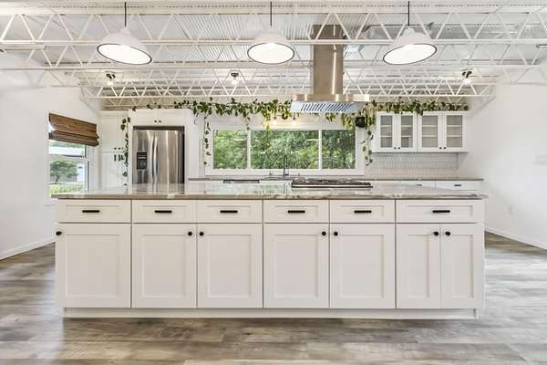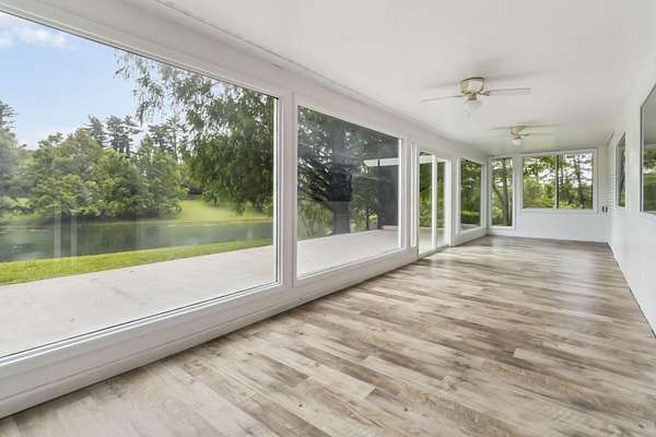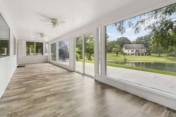 Prepare to be amazed by this fully remodeled showstopper offering 4,192 sq ft of luxurious living space on 2 acres +/- with breathtaking pond frontage! This 4BR/3BA home features a bright open layout, custom tiled showers, a large gourmet kitchen, open dining, butler's pantry, living & family rooms, two fireplaces, a home office (or flex space), and a massive laundry room with abundant cabinet storage. Enjoy two expansive sunrooms - one on each level - with gorgeous panoramic views, sleek modern finishes, and picture windows that bring the outdoors in. Unmatched outdoor living and entertaining space with two patios, a huge second-story sky terrace, and views that will leave you speechless. The oversized detached garage includes a double bay door, a single bay door, and covered side storage. Whether you're seeking a peaceful retreat, a perfect space to entertain in, or a resort style home, this one-of-a-kind property checks every box and more. High-end upgrades throughout combine elegance, space, and functionality in a serene, private setting. A brand new roof (July '25), upgraded HVAC, and new exterior paint add peace of mind. Homes like this are rare - act fast before it's gone!