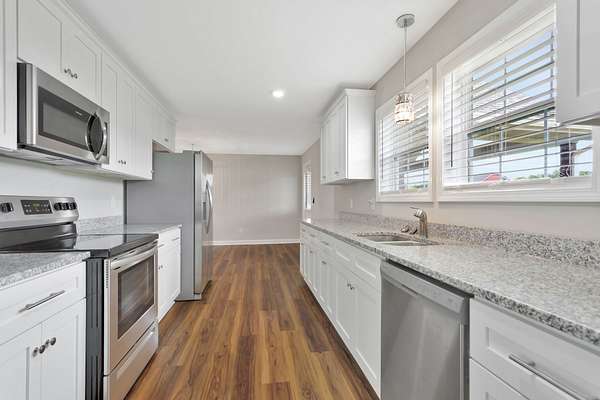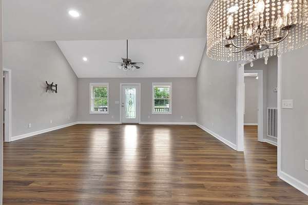 Welcome to this beautifully maintained 3-bedroom, 2-bath home offering 1,684 square feet of thoughtfully designed living space. Featuring an open-concept floor plan with neutral colors throughout, this home is both stylish and welcoming. The kitchen is equipped with stainless steel appliances, crisp white shaker cabinets, granite countertops and flows seamlessly into the spacious living and dining areas--perfect for entertaining or everyday comfort. Enjoy the durability and functionality of luxury vinyl plank flooring, and take in peaceful outdoor living on the covered deck overlooking the large, landscaped yard. Situated on a generous 1.79-acre lot, there's plenty of space to spread out and enjoy. Additional highlights include an oversized garage, a large laundry room, and a convenient storage building. This property has been exceptionally cared for and is completely move-in ready.