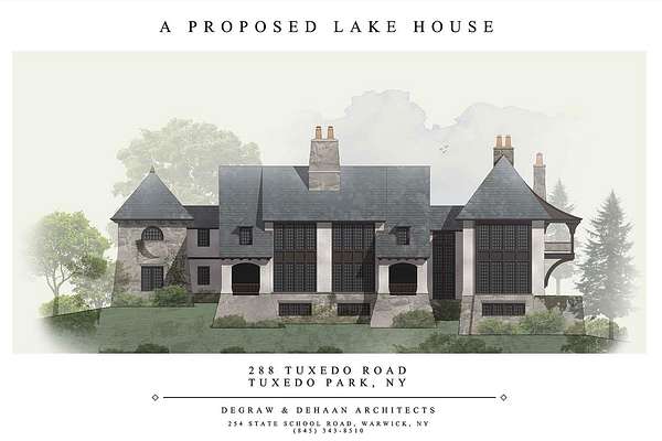 Est $8,461/moExclusive Tuxedo Lake Water View Opportunity! Discover a rare 2.8-acre parcel offering panoramic water views of Tuxedo Lake, perfectly situated for your dream home. This elevated, level, buildable lot is within easy walking distance of the prestigious Tuxedo Club. Enjoy an active lifestyle with direct access to scenic walking, running, and biking routes around the three lakes, as well as historic carriage trails. The property features original stone stanchions, adding a touch of classic elegance to your private driveway entrance. Architectural plans by renowned architect Jeff DeGraw are available and included with the purchase, showcasing a magnificent 10,000 sq ft design. Easy modifications could be made to customize to your vision.