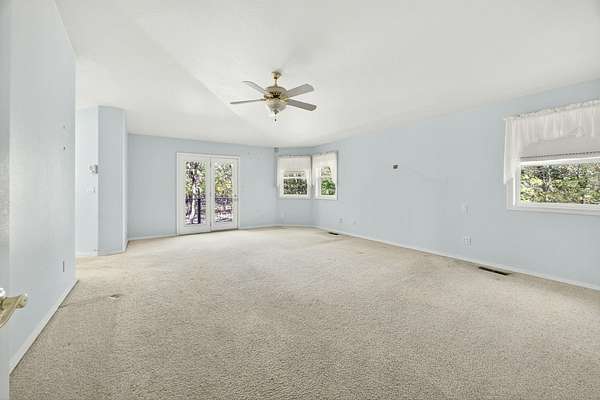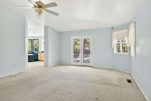 Custom home in one of Grants Pass' most premier gated communities & first time on the market. The property also backs to BLM and connects to Cathedral Hills Trails. Situated on 3.16 acres, the home features 3537 sq ft, 3 beds, 3 full baths, beautiful open floor plan, floor to ceiling built-in book shelves, huge kitchen with island, pantry & built-in desk area. The primary suite is a retreat all it's own, with dual vanities, jetted tub & custom sauna. There is a second ensuite bedroom & bonus sitting room. Exterior features include wrap around deck, covered patio with outdoor kitchen, attached 2 car garage, plus carport, huge storage or workshop area under the home & paved driveway. Enjoy the community park with lovely pond. The home sits back from the road for ultimate serenity.