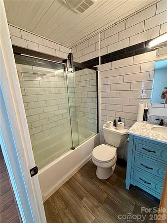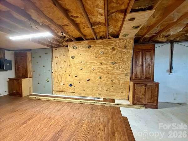 Located within the gated community of Line Runner Ridge, this mountain home sits on 3.82 acres and offers long-range views along with wooded privacy. The home includes two spacious bedrooms and two full bathrooms. The kitchen features an island with seating and a walk-in pantry. The full, partially finished basement provides additional flexibility with a bonus room, wood stove, rock wall, and washer/dryer hookups with a utility sink. Outdoor living spaces include a covered front porch, screened back porch, and an open back deck. A separate storage building provides space for tools, equipment, or recreational items. Recent updates include a renovated kitchen and bathrooms, bamboo flooring in the kitchen and living room, mini-split heating and air conditioning on both levels, a metal roof, and a new septic tank and drainage system installed in February 2026. Line Runner Ridge offers a private, 8-acre lake for non-gas boating, fishing, and swimming, adding to the appeal of this mountain setting.
