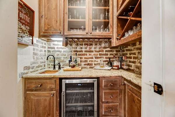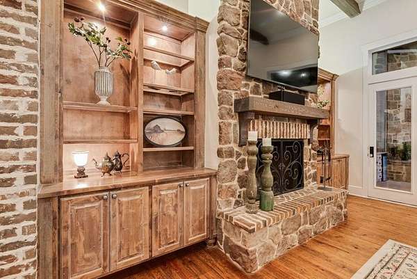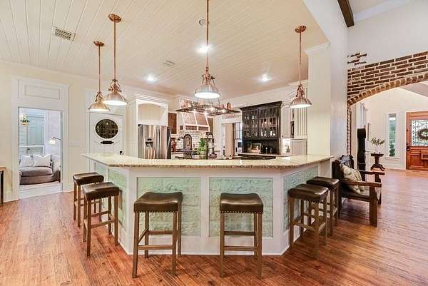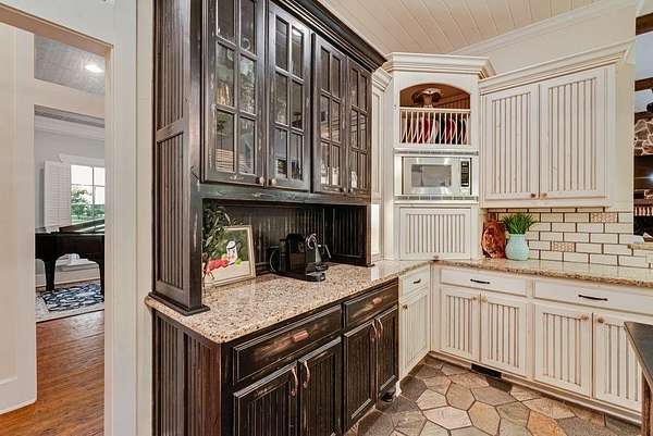 - Built-In Features, Central Vacuum, Chandelier, Decorative Lighting, Double Vanity, Eat-In Kitchen, Flat Screen Wiring, Granite Counters, High Speed Internet Available, Kitchen Island, Natural Woodwork, Open Floorplan, Pantry, Wainscoting, Walk-In Closet(s), Wet Bar