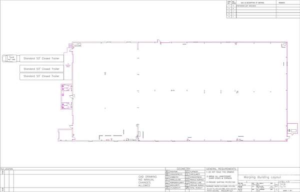 31860 SF 1 10X12 dock door with 3 docking bays with levelers 1 10X10 drive in door Small office Break room with two bathrooms. Outside parking for several trailers Ingersoll Rand Model EP25-ESP air compressor and 2 tanks. Power Panel 1 208V - 1200A Panel 2 280V - 600A Lease price determined by length of term and credit of applicant.