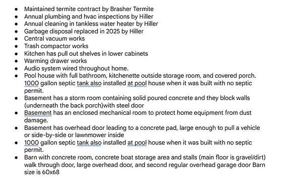 Escape to this stunning estate on 40 acres w/NO restrictions located 2.8 miles from downtown Parsons w/ access to shopping, fiber internet, & Walmart delivery! 1.5hrs from Nashville & 2 hrs from Memphis. Brick home w/ matching brick pool house or mother in law suite, & barn w/storage. High quality finishes. Well maintained. The big ticket replacement items have been completed. Creek lines the property on 2 sides & hosts incredible sunsets from the back patio. Lots of upgrades! Updated primary suite includes a spa-like bathroom w/ heated tiles, soaking tub, custom tile shower, private toilet closet w/ heated bidet, custom cabinetry w/ marble tops, & stunning Brizo luxe gold fixtures. Cooking in this kitchen is a pleasure, w/ its connection to the breakfast, family, & dining rooms w/ picturesque views of the backyard. Premium appliances, (convection oven, convect microwave/oven duo, warming drawer, touch faucet, trash compactor, & garbage disposal) make prep and cleanup a breeze! The family room is the perfect reading spot w/ transom windows & masonry fireplace to keep you cozy all winter long. Living room is open & inviting w/ access from the front entry & dining room to the back patio making hosting in any season a delightful experience. Upstairs offers generously sized bedrooms w/ walk-in closets, Jack/Jill bath, Gameroom, & walk-in floored attic. Basement w/ safe room w/concrete filled walls, mechanical room for vital system equipment, generous gameroom/flexspace, & workshop w/overhead & walkthrough doors leading to exterior concrete parking pad. Enjoy a 20x40 salt h2o pool w/ jetted seats, expansive patio, covered porches, & breathtaking sunset views. The pool house w/ kitchenette & full bath makes an ideal mother-in-law suite. A 60x68 barn provides a tack room, washroom, stalls, & storage for boats or tractors. Updated HVAC units, roof, landscaping, tankless H2O heater, pool liner, foundation drainage system, & more. Owner/agent.