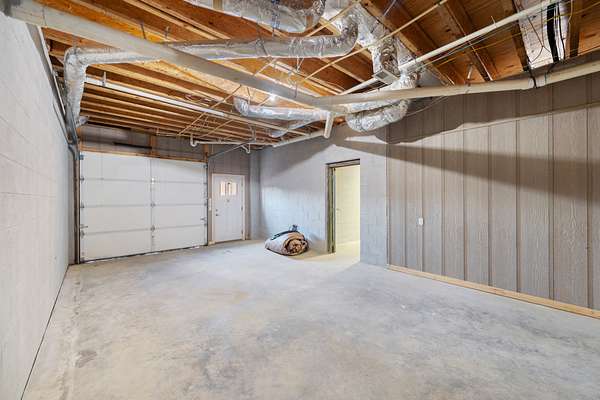 - Aggregate, Circular Driveway, Concrete, Driveway, Garage Door Opener, Garage Faces Side, Parking Pad