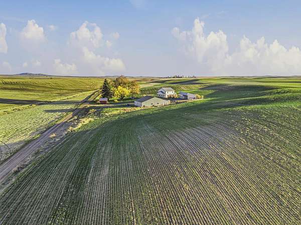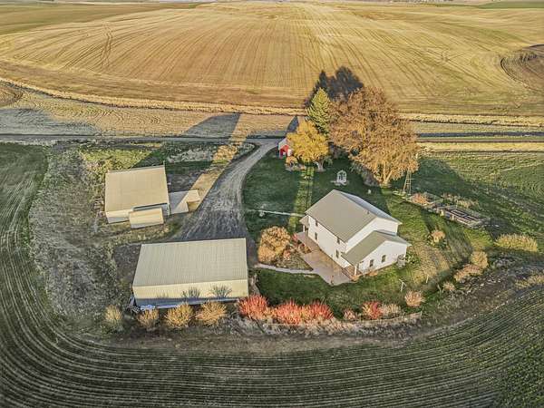 Beautiful 2009 custom farmhouse in Reardan on 8 acres. Top of the line windows, metal roof, efficient furnace/AC. On the main floor you will find formal dining, living room, the primary bedroom/bath, huge laundry room with panty and powder bath. Upstairs 2 additional bedrooms and full bath as well as 2 bonus spaces ideal for office or media, each space has a closet and windows could easily be transformed into a 5 bedroom. Large yard with mature landscaping, sprinklers and fenced garden space. Covered front porch to take in the views. Outbuildings-40x70 insulated and heated shop with kitchen and bathroom-perfect for ADU or home based business, shop has it's own septic tank, RV hook-up w/dump. 24x50 metal building with 2 bays enclosed w/power and 3 open bays for additional parking. Original Model A garage with new siding and roof, plus 8x20 storage shed. Unbeatable setting with stunning scenery, surrounded by wheat fields, yet just minutes to town-10 min. Reardan, 20 min. to Fairchild AFB, 40 min Spokane.