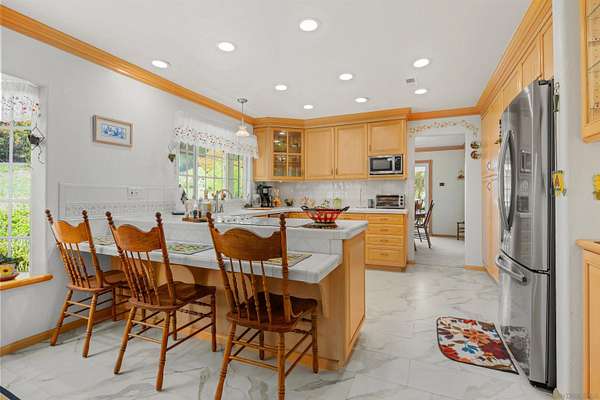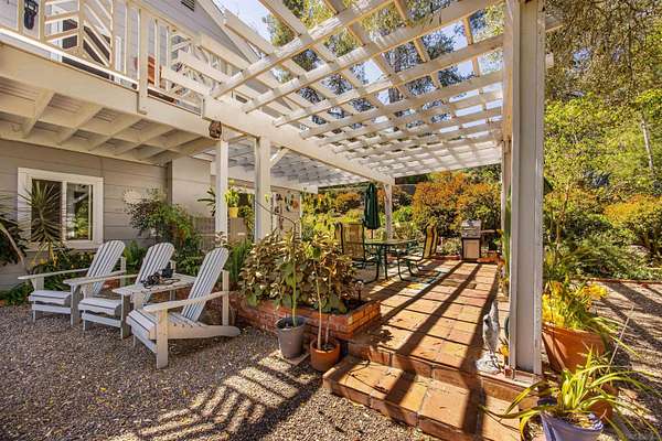 Surrounded by mature oak trees and an olive tree grove, this inviting home is tucked away on 2.51 private acres, featuring curated landscape vignettes and charming paver walkways that invite you to explore the natural beauty of the property. Enjoy tranquil views of the surrounding hillsides while experiencing the perfect balance of seclusion and comfort. Enter through double doors into a spacious living room featuring a large picture window that frames the serene landscape and fills the space with natural light. A classic brick fireplace adds warmth and character, while the formal dining room flows seamlessly to a covered patio through sliding glass doors-ideal for indoor-outdoor entertaining. The bright, generously-sized kitchen offers abundant cabinetry and counter space, recessed lighting, and a convenient sit-at counter, making it perfect for both everyday living and hosting. A dedicated laundry room with a rinse basin adds functionality and ease. All bedrooms are thoughtfully located upstairs, including the spacious primary suite, which features dual closets, a private bath with a walk-in shower, and its own balcony-an ideal spot for morning coffee, yoga, or simply taking in the peaceful surroundings. Located in the sought-after Hidden Meadows community, residents enjoy a unique lifestyle that blends rural tranquility with resort-style amenities, including a golf course, tennis courts, pools, clubhouse, and a vibrant calendar of social events. This is a place where neighbors become friends and every day feels like a retreat.