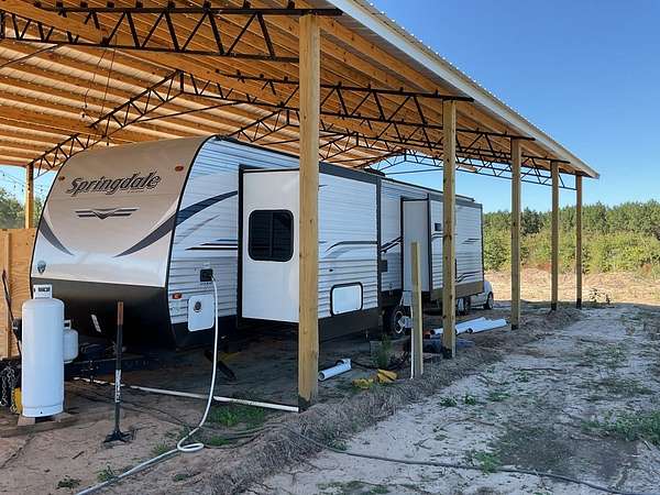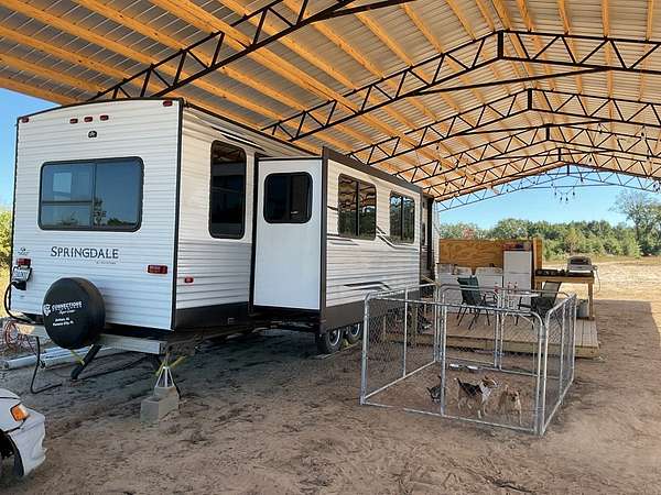 Est $3,112/moThis is a good one! It has 58 acres of cut over land that the owner has cleared about 8 acres, and the 35 acres of wooded land in the back has a nice creek and mature hardwoods. It has over 800' of dirt road frontage. With no restrictions, enjoy hunting, shooting guns, farm animals, etc. It has a 2019 333 RE Keystone Springdale RV under a 40 x 84 pole barn. Seller is leaving all appliances.