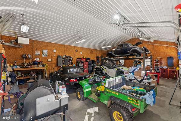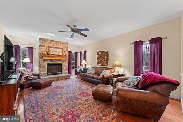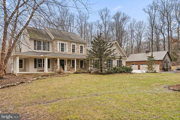 Set on a peaceful, 8.1 acre, wooded lot, this beautifully maintained stone-front colonial offers the perfect balance of privacy, comfort, and functionality. A welcoming covered front porch and classic architectural details create immediate curb appeal, while the property also features a stunning detached barn-style garage with three bays that includes heat and electric-ideal for car enthusiasts, or additional storage. Inside, a bright two-story foyer with hardwood flooring and a turned staircase creates an elegant first impression. The traditional floor plan includes a formal dining room with large windows, along with a private study with French doors-perfect for a home office. Just beyond, the spacious family room is anchored by a floor-to-ceiling stone fireplace and surrounded by windows that bring in natural light and wooded views. The heart of the home is the open kitchen and breakfast area, featuring warm wood cabinetry, generous counter space, center island seating, and a sunny breakfast nook. The adjoining sitting area provides a comfortable space to relax while enjoying views of the backyard and direct access to the expansive rear deck-an ideal setting for outdoor dining, grilling, and entertaining while overlooking the surrounding trees. The spacious first floor primary suite offers a peaceful retreat with a large bedroom, private sitting area with a gas fireplace, two walk-in closets, and an en suite bathroom complete with double vanity, soaking tub, and separate shower. The first floor is completed by a craft room or second home office, half bathroom and laundry room plus access to the attached two-car garage. Upstairs, two additional bedrooms share the full hall bath while the third junior suite offers a private full bathroom providing plenty of space for family or guests. The unfinished walk-out lower level offers excellent storage and future finishing potential for additional living space or a home workshop. The basement has hook ups for additional lighting, welder and air compressor for the hobbyist. The home also includes a whole house generator! You're just a quick drive to Saint Peters Village and French Creek State Park. 2881 Chestnut Hill Road is a rare combination of classic style, flexible living space, and exceptional outbuilding storage in a tranquil setting.