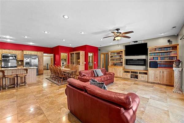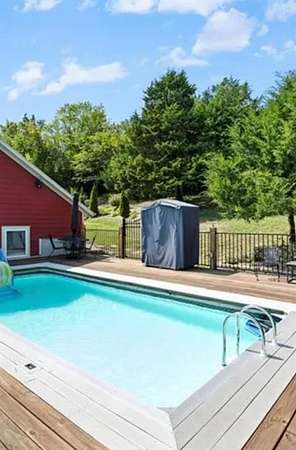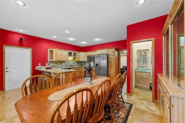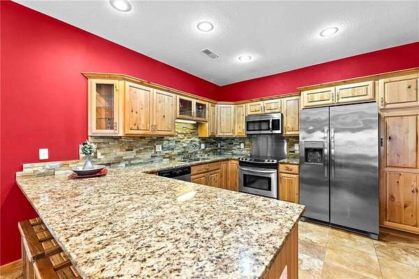 Welcoming wrought iron entrance gates, Cedar trim, this exquisite 3 Bedroom home perched on the side of a hill overlooking beautiful views for every season on a corner lot 1.5 miles from town on blacktop. The exceptional finishes in this home flow with Travertine tile floors and Granite countertops throughout, stainless kitchen sink, stove, microwave, refrigerator and dishwasher, Quartz backsplash, Jacuzzi bath, vessel sinks and new faucets, finished garages, multipurpose rooms, wood stove for those cold cozy nights. Electric LED fireplace, built in bookshelves and china cabinet, insulated interior walls for sound barrier, numerous closets finished for organization, wood doors, trim and cabinets. This multifunctional bathroom has 3 separate rooms! Storage with a drop-down ladder with extra attic space and shelving above the garage. For entertainment the screened porch, sauna, hot tub and inground/above ground 52"h/48"d 12'x24' pool with a simple filter pump for easy care, wrapped with wood decks and wrought iron rails, a luxury 6' Firepit, Horseshoe pit, chicken runs with hen houses. A 2nd entrance to the Estate with an outbuilding newly added in 2022, equipped with 100 amp electric breaker box. 3* 30/50 amp hookups for camper or boat. 4 miles to Hillsdale Lake or lake Miola. This 1500+ sq ft home is trimmed in switched lights with remote for different seasons, different colors or themes. Floodlights around along with a camera surveillance system including a monitor and 8 night vison cameras inside and out that can be monitored on your mobile phone while away. Plenty of Woods and View! You must see this higher quality home built for the Builder himself! This home is move in ready and has been very well kept with lots of mature landscape. Several flowering, colorful bushes and trees throughout the Seasons. It's like a new home without the wait time! A must see to appreciate!