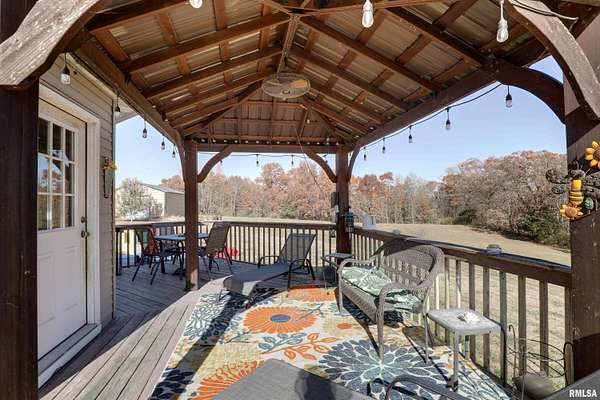 Step into your own piece of paradise in Loraine, IL with this charming 3 bedroom, 2 bath ranch home nestled on 5 beautiful acres! Escape the hustle and bustle of the city and embrace a life of tranquility with all the convenience of single-level living. As you walk through the door, you're greeted by a light and bright living space flowing seamlessly into a spacious eat-in kitchen equipped with plenty of storage for all your culinary creations. The master suite offers a private oasis complete with a luxurious bath and a walk-in closet, while the third bedroom is versatile, serving as a home office or cozy guest room. Step out from the kitchen onto a generous deck with a pergola, perfect for hosting gatherings or simply unwinding with a hot cup of coffee as you soak in the peaceful backyard views. With an attached 2 car garage, an additional 1 car outbuilding, and a storage shed, you'll have ample space for all your vehicles and outdoor gear. Experience the essence of country living with this delightful home that blends comfort and serenity seamlessly. Make this your haven where every day feels like a cherished retreat. Welcome home!