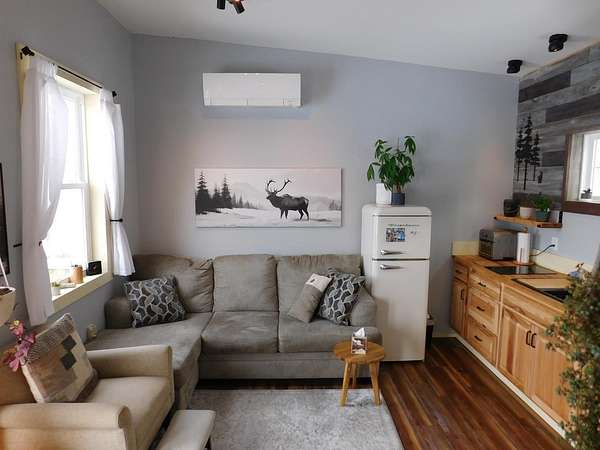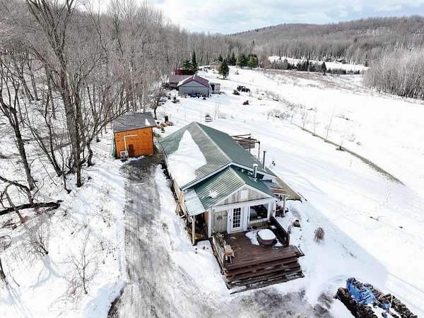 Welcome to 2882 Perley Road, a unique property nestled on over 3 acres of land with stunning Westerly views! This property consists of TWO homes! The main home was built in 2008 and has 2 bedrooms, including a large primary bedroom, an office, a luxurious sauna, a large full bathroom, and a fabulous open-concept kitchen/living/dining space that is perfect for entertaining! Convenient mudroom/laundry entry too! The kitchen was fully remodeled in 2023, along with new siding and gutters added that same year. The living area has a nice wood stove and gorgeous hickory wood floors. A brick paver walkway leads to an expansive 40X10 side deck and a 2nd rear deck with an awning - allowing maximum enjoyment of the amazing views and sunsets! This home is a busy Airbnb and generates an impressive weekly income. The 2nd building on the property is a newly added in 2025 Amish-built "tiny home" ADU! This adorable studio apartment has its own kitchen/living room, a 3/4 bath that includes a top-of-the-line Schluter shower system, and a cozy bedroom/office space. The ADU also benefits from the striking views! Both homes have generators with hook-ups. This property is less than 10 minutes to the shops/restaurants in downtown Enosburg, and under 30 minutes to Jay Peak Resort for world-class skiing! A special property like this, doesn't come on the market every day!