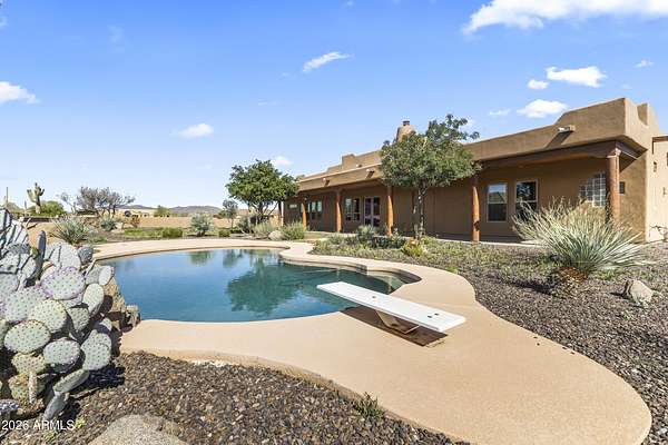 Discover the perfect blend of comfort, privacy, and equestrian living in this beautifully maintained single-family home, tucked away on 2.5 serene acres. Offering over 3,600 sq ft of thoughtfully designed space, this 4-bed, 3 3/4-bath residence delivers room to live, work, and unwind. Step outside to enjoy expansive covered patios in both the front and back--perfect for morning coffee, evening gatherings, or simply taking in the quiet surroundings. The private pool creates a refreshing oasis, while the full horse setup--including stalls and ample space for riding--makes this property a dream for horse lovers. A convenient watering system supports both the landscaping and equestrian areas, ensuring easy upkeep. Whether you're seeking a quiet escape, room to grow, or a place to fully embrace the equestrian lifestyle, this property offers a rare combination of space, comfort, and versatility.