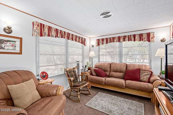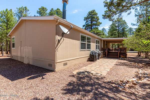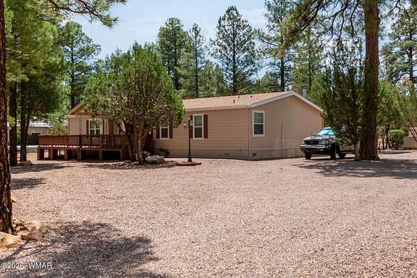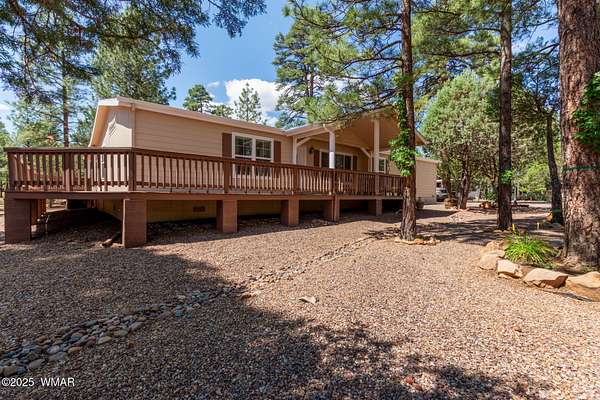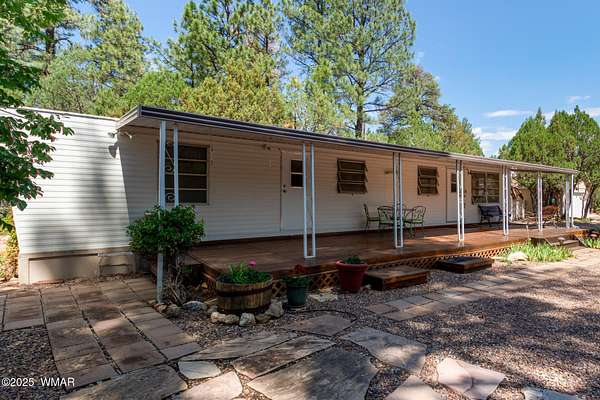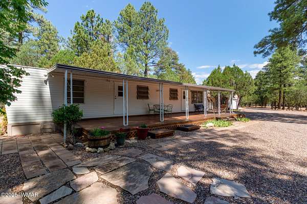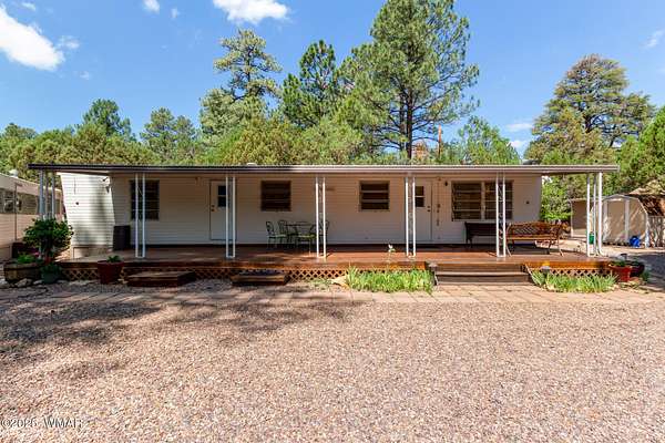The proud original owners have lovingly maintained this property for years and are now ready to pass it on to someone new to enjoy and make their own. The primary manufactured home, secondary home, and RV home all can come fully furnished. Including furniture, curtains, smart TVs, decor, appliances, washer/dryer, and even kitchen essentials can all be included. This is a truly turn key, move-in-ready opportunity waiting for its next owner to enjoy from day one! Nestled on 1.82 scenic acres in beautiful Heber-Overgaard, this one-of-a-kind property offers well-maintained multi-residence property featuring a beautifully updated primary manufactured home, a 2-bedroom mobile home, and a fully equipped RV home. Main Home built in 2005 30' x 64' roof was replaced in 2024. Recently updated with new interior/exterior paint, granite bathroom counters, new toilets, faucets, dishwasher, water heater and more. Master bedroom features oversized master tub, separate shower and dual vanities. Enjoy outdoor living with a spacious Trex wrap-around deck and a charming front porch, perfect for relaxing or entertaining. The beautifully landscaped front and back yards are adorned with mature pine trees, lush plants, and well-maintained shrubs. Three storage sheds (two with new roofs), and a two-car garage with a working electric opener. Second 1959 Mobile Home 10' x 50'. Features 2 bedrooms, 1 bathroom with redwood deck, awnings, vinyl/carpet flooring, and furnished with beds, TV, couch, and microwave. Exterior was painted in 2023, roof coated in 2022. RV 1965 Home 32' x 8'. Includes a bedroom, kitchen, dinette, and full bath setup. Features laminate counters, microwave, and more. Recently painted with updated interior touch-ups. This unique property offers a rare combination of upgraded living spaces, versatile guest accommodations, and beautifully landscaped outdoor areas. Whether you're looking for a primary residence with additional units or a family retreat this one has it all. Contact today to schedule a private showing.