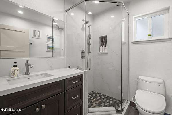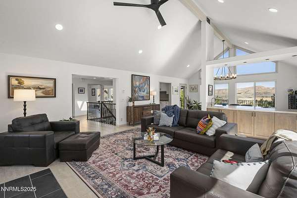 A Place to Breathe in Beautiful Verdi. Discover a home where serenity meets style. Perched on 1.63 acres at the end of a quiet cul-de-sac, this 3,302 sq. ft. custom residence offers breathtaking panoramic views of the valley and surrounding hills - all set to the charming sound of the distant train. Step inside and experience thoughtful updates throughout, including but not limited to fresh interior and exterior paint, new interior doors including closet doors, custom stairways and railings, Hunter Douglas Silhouette UltraGlide window coverings. Every detail reflects quality craftsmanship and pride of ownership. The property is perfectly suited for both comfort and recreation. Enjoy mature landscaping with sprinkler systems in the front and back, a horse enclosure, and generous space for all your toys. The large three-car garage, RV parking with a 30A power hook-up, and ample additional parking make this home as functional as it is beautiful. Come home to a peaceful retreat that captures the best of Northern Nevada living - wide open spaces, incredible views, and modern updates throughout. A detailed list of all recent improvements is available upon request. The Turkish lamp in the family room does not stay.