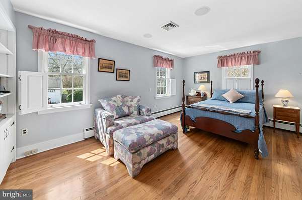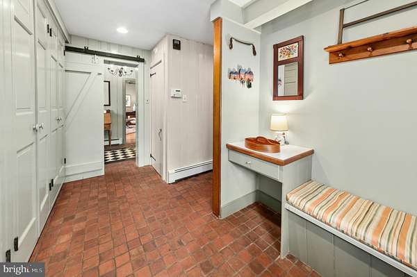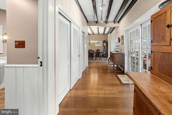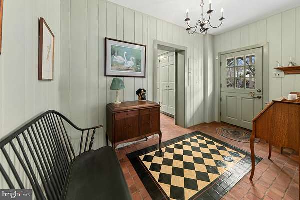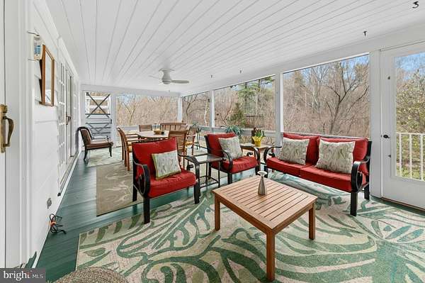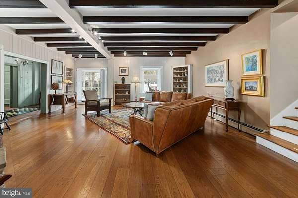 Set quietly within the pastoral landscape of Buckingham Township, Forebay is a rare and compelling example of Bucks County's architectural heritage-an early nineteenth-century Pennsylvania forebay bank barn thoughtfully reimagined for modern living. Constructed circa 1805, the barn once served the surrounding mill community, its elevated form designed for both function and endurance. For generations, it stood overlooking the valley and nearby Watson Creek, a defining element of the Spring Valley landscape. In 1955, renowned Bucks County master craftsman Luther Nash undertook the original conversion of the structure into a residence, preserving its architectural integrity while introducing a new chapter of life within its stone walls. Subsequent expansions and updates have enhanced the home while honoring its historic character. Today, Forebay unfolds across more than 4,000 square feet, where the craftsmanship of another era remains vividly present. Hand-hewn American chestnut beams, pegged construction, and exposed, re-pointed fieldstone walls rise to meet soaring ceilings, while skylights and deep-set windows within 18-inch stone walls draw natural light into every space. The reimagined bank entrance, approached by cobblestone pavers and framed by a Dutch door, opens to interiors rich in texture and warmth. Mercer tile floors, a commanding fieldstone fireplace, and thoughtfully connected living spaces create an atmosphere that is both refined and inviting. The kitchen is designed for contemporary living, offering a 5-burner gas cooktop, copper prep sink, custom cabinetry, and generous workspace, all set against the backdrop of deep window sills and views of the surrounding landscape. Bathrooms throughout the home have been tastefully updated, blending modern comfort with timeless materials. A defining feature of the home is its seamless connection to the outdoors. With access to the exterior from every level, the living experience extends naturally into the landscape. A wall of glass opens to a screened porch and four-season room, while the covered patio below creates an exceptional setting for entertaining. Here, the property reveals its full expression-a summer kitchen, hot tub, shuffleboard court, curated gardens, and an antique stone paddock thoughtfully integrated into the design. The grounds unfold into rolling lawns and woodland, where Watson Creek meanders quietly through the property, leading to a nearby historic stone bridge. Modern systems provide peace of mind, including a whole-house generator, 7-zone heating system, updated electrical, water treatment systems, comprehensive security system, a heated workshop and newer roof. All just moments from the cultural destinations of Doylestown and New Hope, yet set within a landscape that feels timeless, Forebay offers a rare opportunity to inhabit a place where history, architecture, and lifestyle exist in perfect balance.