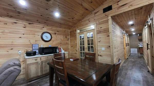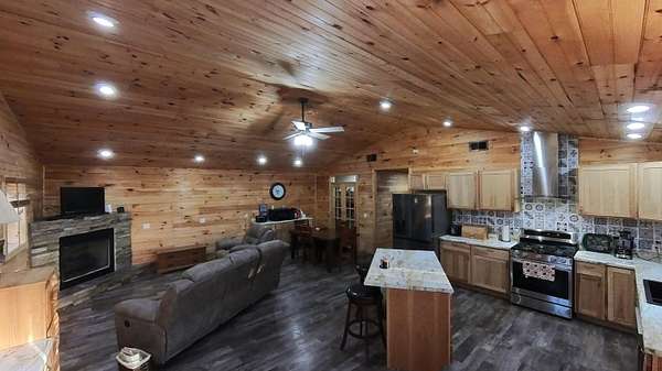 Est $1,475/moNew Earth Berm Home on 10+ Acres. 2 Bedroom 2 Bath. Open Concept, Vaulted Ceiling. Hickory Custom Kitchen Cabinets. Custom Barn doors through out, Breakfast Bar, Pantry, Storage Room, Coffee or Appliance Bar. Living Room has gas fireplace. Foyer has built in desk area. Knotty Pine Ceilings, Modern Rustic Feel. Large utility room with sink, walks out to oversized one car garage. Taxes have not been accessed on home.Close to Willow Springs. Willow Spring School District.Close to the Mark Twain Forest. Rivers and Lake.