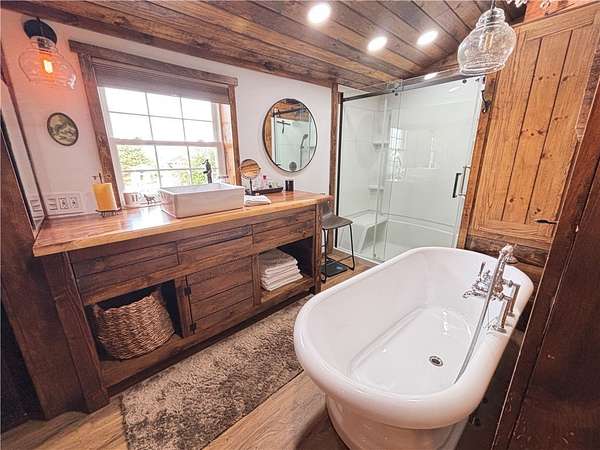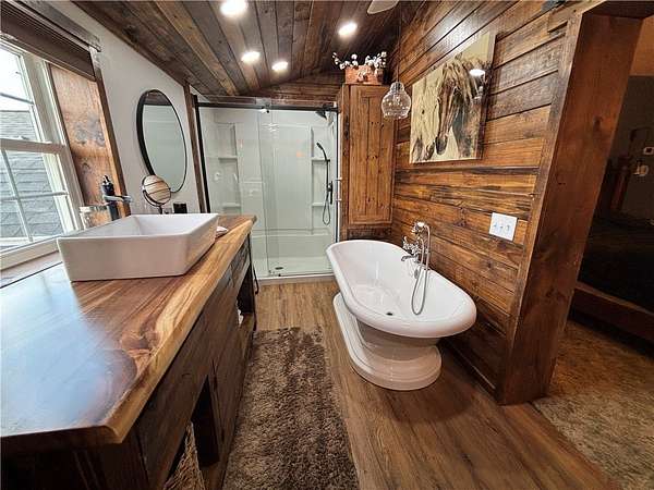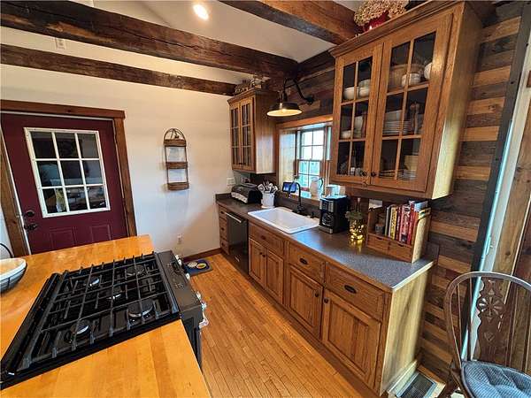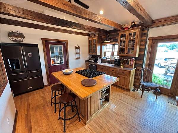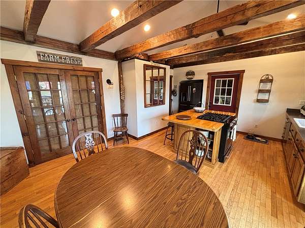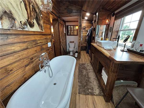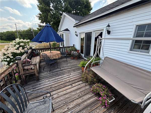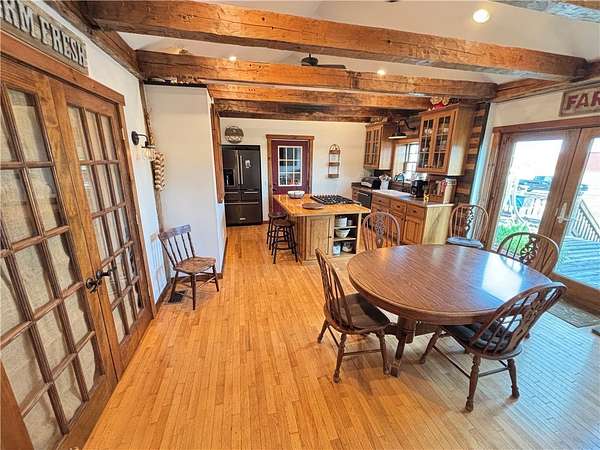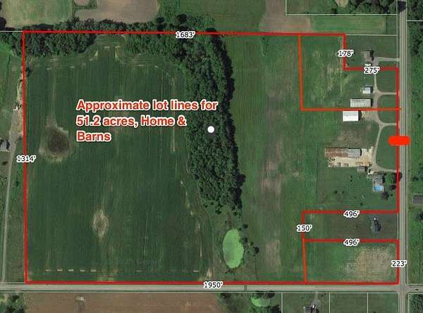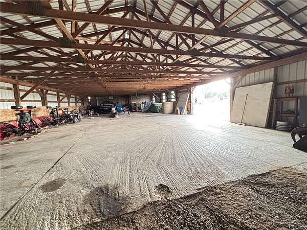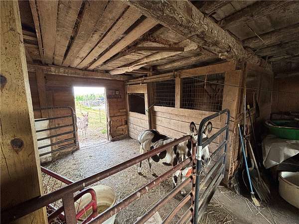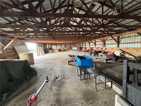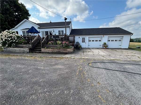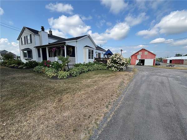 2887 Walworth Road - Macedon, NY - Gananda School District Discover the perfect blend of country charm and modern convenience in this versatile 3-4 bedroom, 1 1/2 bath home set on approximately 51 acres of land. Inside, you'll find a custom kitchen and a beautifully designed full bath, accented by warm natural wood beams and a cozy propane fireplace. Relax on the inviting open front porch or entertain on the side deck. The attached 2-car garage, updated mechanicals, vinyl siding, and a new roof provide ease of ownership. For those seeking space for hobbies, farming, or business opportunities, this property offers over 12,000 sq ft of barn space. One barn is currently rented through 12/31/25, providing potential income. Whether you envision a working farm, workshop, or creative studio, the open acreage and expansive outbuildings offer endless possibilities. This property is being split from a larger parcel so the taxes will be adjusted accordingly. 44 acres are listed with a conservation easement. Also being offered with just 6.4 acres, MLS R1630974.
