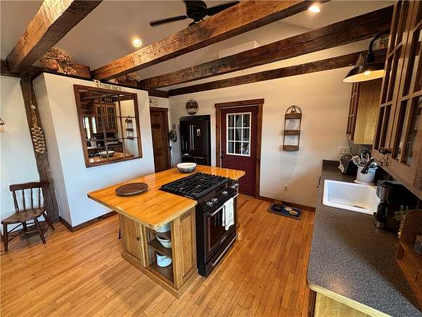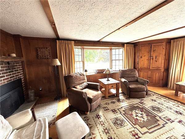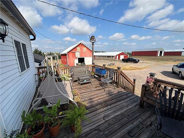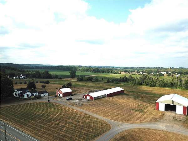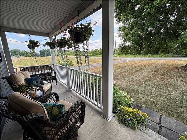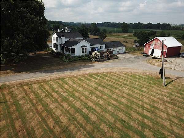 2887 Walworth Road - Macedon, NY - Gananda School District Discover the perfect blend of country charm and modern convenience in this versatile 3-4 bedroom, 1 1/2 bath home set on approximately 6.4 acres of land. Inside, you'll find a custom kitchen and a beautifully designed full bath, accented by warm natural wood beams and a cozy propane fireplace. Relax on the inviting open front porch or entertain on the side deck. The attached 2-car garage, updated mechanicals, vinyl siding, and a new roof provide ease of ownership. For those seeking space for hobbies, farming, horses, or business opportunities, this property offers over 12,000 sq ft of barn space. One barn is currently rented through 12/31/25, providing potential income. One barn has a existing horse stall with yet another barn having the size and opportunity to add many stalls. Whether you envision a farmette, workshop, or creative studio, the open acreage and expansive outbuildings offer endless possibilities. This property is being split from a larger parcel so the taxes will be adjusted accordingly. Also being offered with 51 acres, MLS R1631047.