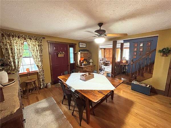 - Ceiling Fans, Den, Eat In Kitchen, Kitchen Island, Main Level Primary, Natural Woodwork, Separate Formal Dining Room