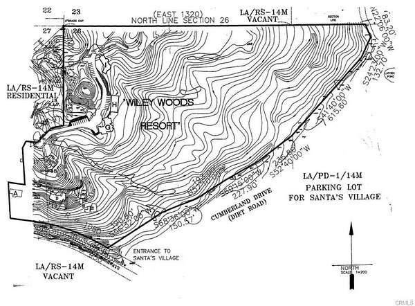 Nestled among the trees is a rustic cabin featuring 5 bedrooms and 2 bathrooms, adding charm and potential utility to the property. Water rights are included, enhancing its development appeal. The parcel borders Sycamore Road, Green Briar, and stretches toward Cumberland Road, and is adjacent to SkyPark at Santa's Village. With a location this unique and accessible, the possibilities are as vast as the forest itself. A Rare Opportunity to own over 44 acres of pristine mountain land in the heart of Sky Forest, ideally situated just off Highway 18 for convenient access. Surrounded by a variety of trees and breathtaking natural beauty, this expansive property offers incredible potential to build something truly special in a magical setting. Whether you're seeking a private mountain retreat or looking to develop a unique project, this property offers the perfect blend of seclusion and accessibility. Formerly known as the Wylie Woods Retreat and once home to the Old Presbyterian Church Conference Center, the land holds a rich history. Although the hotel and lodge structures were destroyed in the Old Fire (per seller), the opportunity to reimagine this space is wide open. The land includes three parcels totaling over 44 acres, with frontage along Highway 18. It's also accessible via Sycamore Drive through the recognizable 'Wonderland' gate. Come explore Sky Forest and envision what you could create in this one-of-a-kind setting. The cabin is one of the parcels (2.36 acres) and the other 2 parcels are commercial vacant land. Per seller, it also has mineral rights and logging rights.