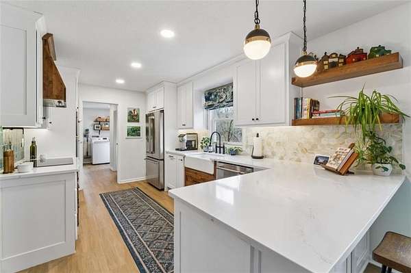 Welcome home to your new country estate! Pulling into this property, you'll hear the crunch of a freshly graveled driveway, and completely surrounded by an array of trees, giving full privacy, is a sprawling home that will await you in the quiet countryside. Inside you are greeted with an inviting entryway and sitting room with large windows facing north allowing natural light in this cozy room. Just a little further and you have a formal dining area with stylish fixtures and vibrant, stylish wall paper. The formal living room has vaulted ceilings, plenty of room for entertaining, and large, painted bookshelves on either side of a wood-burning fireplace. The room to not miss is the fully renovated kitchen, with custom cabinets, quartz counters, accents, hand-picked tile and all new appliances--you will just be excited to cook dinner every night! Towards the back, behind the kitchen is your mud area, garage with a Tesla EV charger, laundry room, and half bath for guests. The main level features 3 bedrooms and 2 bathrooms, including the primary suite, and upstairs are the remaining 2 bedrooms and a full bathroom. The basement will be a fabulous place to make your own. Almost 1,000 sq ft of finished space offers a ton of possibility for another living, office space, card table, pool table, you name it! The HUGE bonus is that you did NOT sacrifice storage space, because there is about 900 sq ft of that on the other side of the basement! Be at ease with the well-maintained mechanicals, including a new septic system as of 2021 and newer propane lines from the tank to the house. Out back you have a lovely patio space that faces into the woods. Nearby, a 30x40 outbuilding perfect for storage and workshop space. The immense privacy is something to dream about with this one of a kind home. Convenience, modern amenities, and country living all wrapped into one!