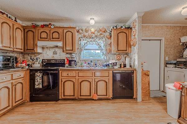 - Blinds, Ceiling Fans, Electric Range, Kitchen/Dining Combo, Laminate Counter, Laundry/Utility Room, Living Room, Split Floor Plan, Walk-In Closet(s), Wood Cabinets, w/ Hookups