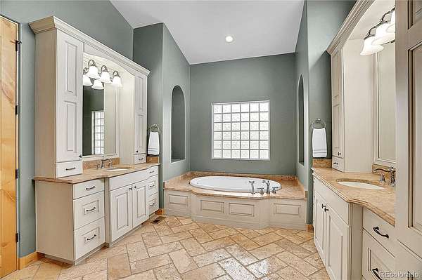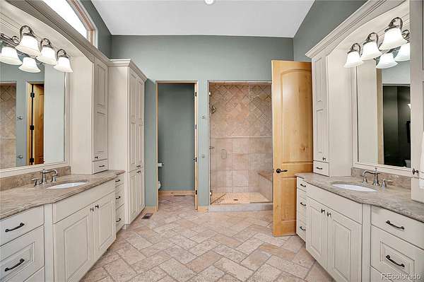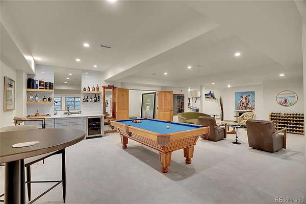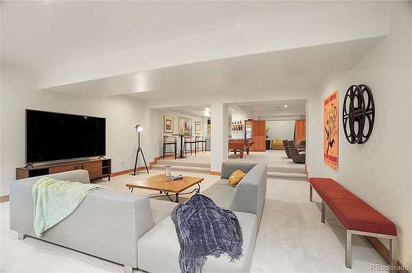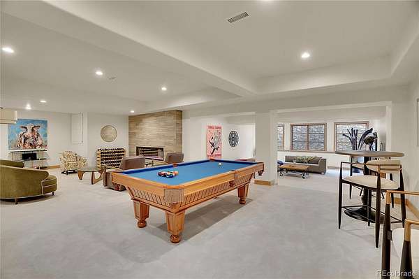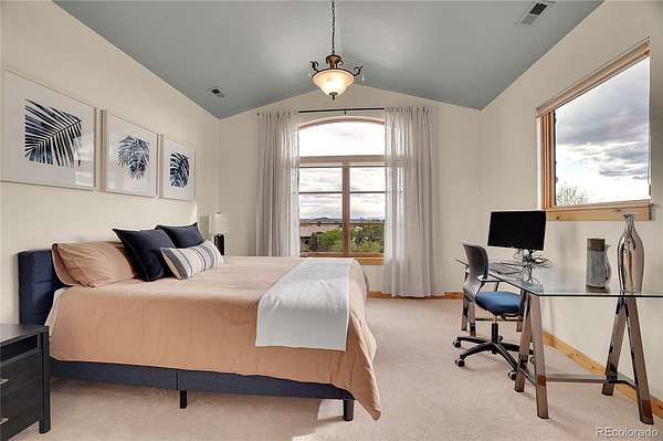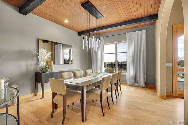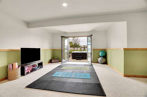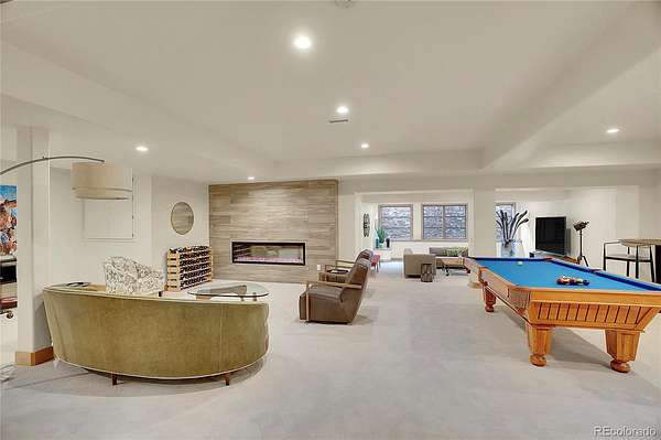 The spacious guest suite on the garden level includes a private bathroom and direct access outdoors, perfect for easy indoor-outdoor living. The lower entertainment level emphasizes relaxation and privacy, incorporating an electric fireplace, a large recreation area, and spaces for family enjoyment. Additional features include an oversized four-car garage, and remarkable views. This exceptional home is ideally located just 25 minutes from DIA, downtown Denver, and Boulder.