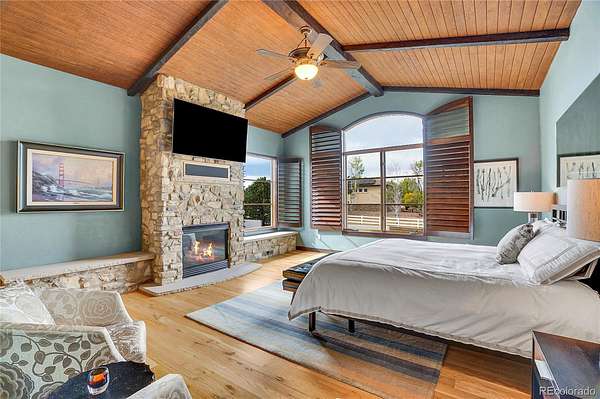 Escape to the primary suite—a tranquil sanctuary set on its own level, featuring a gas fireplace, stone benches, and expansive views. Unwind in the steam shower or whirlpool found in the luxurious master bath. Upstairs, three well-appointed bedrooms offer private retreats with their own en-suite bathrooms and walk-in closets, ensuring comfort and convenience for all. Whether welcoming guests or accommodating family, every space is designed with purpose and elegance.