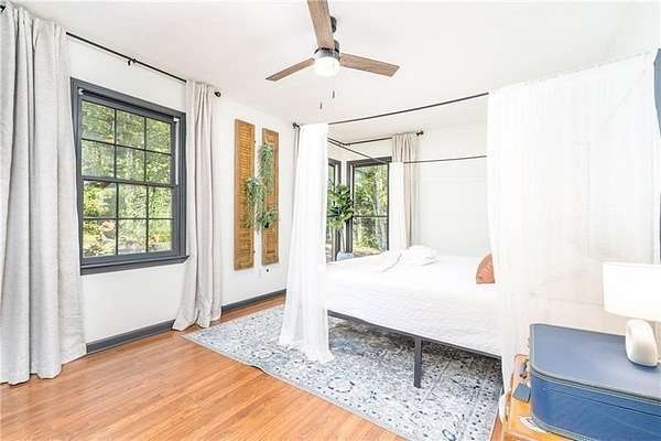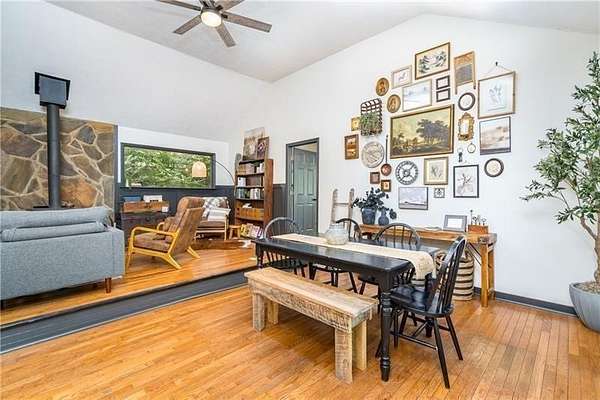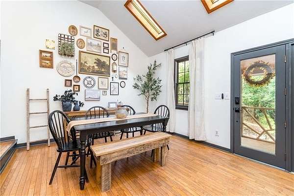 Welcome to your dream mountain retreat! Nestled in the picturesque mountains along Vandegriff Creek in Elijay, GA, this enchanting ranch cottage offers a harmonious blend of natural beauty and modern luxury. *Spanning 3.52 acres, with over 350 feet of pristine creek frontage, this home is a rare sanctuary for those seeking tranquility and refined living. *Step inside to vaulted ceilings with skylights that flood the space with natural light. Scenic views surround you from every window, while warm hardwood floors and tastefully updated lighting and hardware add a touch of sophistication. The open-concept floor plan creates an inviting space for entertaining and making memories with loved ones. *The heart of the home, the kitchen, boasts striking black granite countertops with elegant white veining, complemented by glossy ceramic backsplash tiles. Sage green cabinetry and a beautifully crafted wood island complete the space, creating both style and function. Just behind the kitchen, you'll find convenient access to the laundry room, mudroom, and additional storage. *Anchoring the living area is a character-rich black stove pipe on a stone threshold, providing both warmth and a focal point. The open game room, with its peaceful views, offers flexible use as an office or additional lounge area. From here, step out onto the expansive back deck that overlooks the property, leading to a stone patio that provides a pathway to the yard and a large firepit, perfect for gatherings under the stars. *In the owner's suite, large windows flood the room with sunlight and offer serene views of the creek and the firepit, creating a perfect sanctuary to start each day. *Outdoors, relax around the custom-built firepit, designed to seat eight comfortably, with breathtaking views of the neighboring horse pasture and the soothing sounds of the babbling creek. *For nature lovers and adventure seekers, a scenic hiking trail into the mountains lies less than half a mile away. The Chattahoochee National Forest and the Blue Ridge Wildlife Management Area are just beyond, offering countless trails, waterfalls, and outdoor attractions. Sold fully furnished, this property offers turnkey luxury with exceptional short-term rental potential. Just 25 minutes from Downtown Ellijay, with its charming orchards, wineries, shopping, and dining, this mountain oasis offers the perfect balance of seclusion and convenience. *Whether you're seeking a personal retreat or a lucrative investment, this mountain cabin exceeds every expectation. The HOA is comprised of 3 homes only. No Fees. Minimal restrictions. Road has been recently paved!