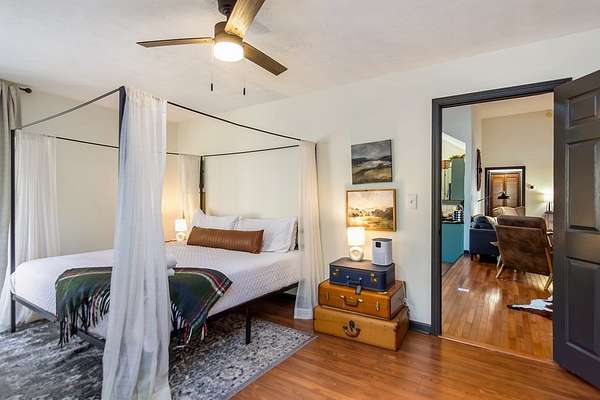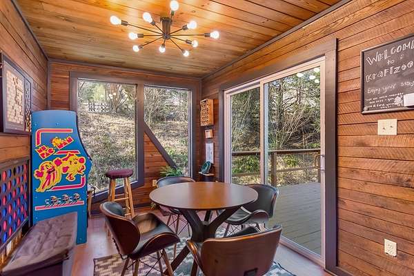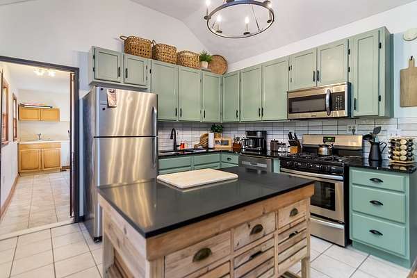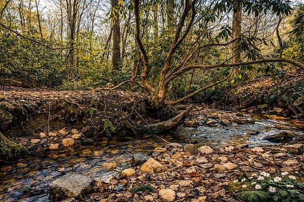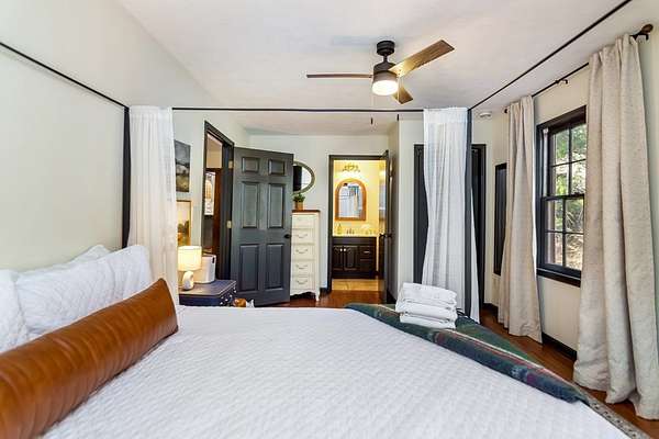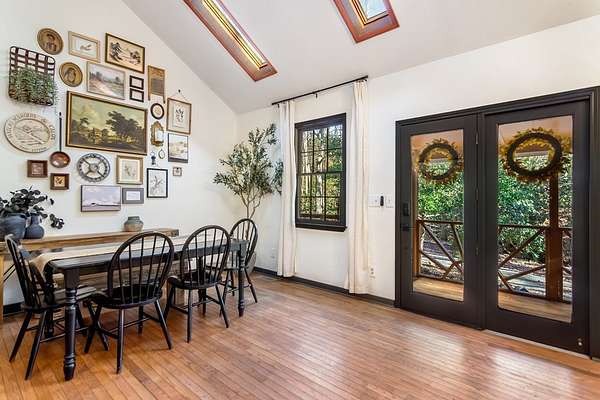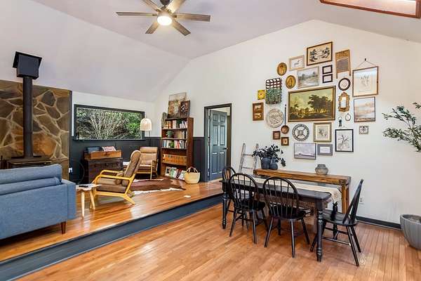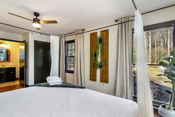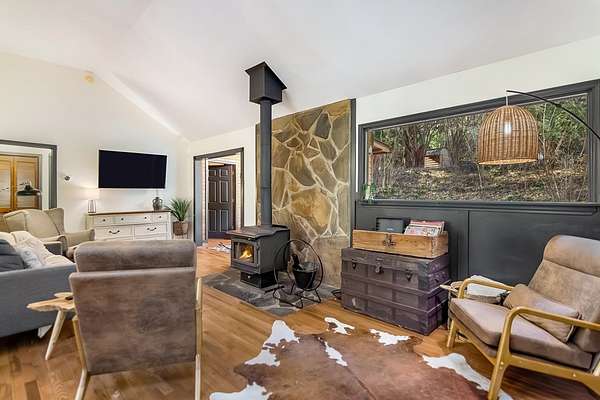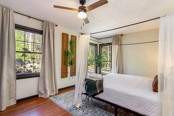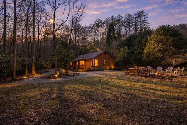 Welcome to a rare mountain retreat along Vandegriff Creek in Ellijay, GA. Set on 3.52 private acres with over 350 feet of creek frontage, this beautifully curated ranch-style cottage offers the perfect blend of tranquility, charm, and modern comfort. Inside, vaulted ceilings with skylights flood the home with natural light, while hardwood floors and updated lighting and hardware elevate the space. Scenic views surround you from every window, and the open-concept layout is ideal for entertaining or quiet evenings at home. The kitchen features black granite countertops with white veining, a glossy ceramic tile backsplash, sage green cabinetry, and a handcrafted wood island, with easy access to the laundry room, mudroom, and storage. The living area is anchored by a black stove pipe on a stone hearth, creating warmth and character. An open game room--ideal as an office or secondary lounge--leads to an expansive back deck overlooking the property. Below, a stone patio guides you to the yard and a large firepit perfect for gathering under the stars. The owner's suite offers oversized windows with peaceful creek views and abundant natural light. Outdoors, enjoy a custom firepit seating eight, views of a neighboring horse pasture, and the soothing sounds of the creek. A scenic hiking trail is less than half a mile away, with the Chattahoochee National Forest and Blue Ridge Wildlife Management Area nearby. Sold fully furnished, this turnkey property offers excellent short-term rental potential. Just 25 minutes from downtown Ellijay's orchards, wineries, shopping, and dining. HOA includes only three homes with no fees, minimal restrictions, and a recently paved road.