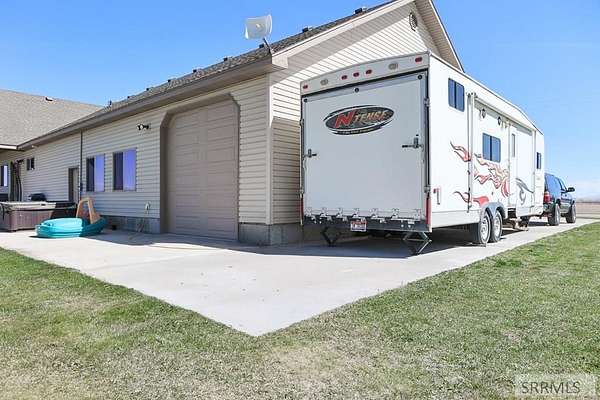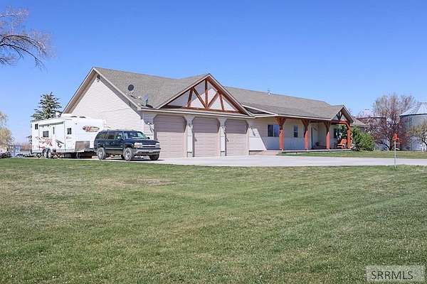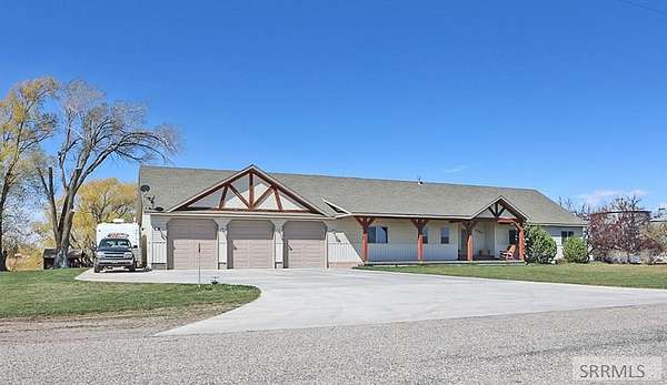 Spacious and energy-efficient 5-bedroom, 3-bath home offering approximately 3,000 sq ft of thoughtfully designed living space, perfectly situated for those who value both comfort and the outdoors. This property features a rare and highly desirable location with direct access to prime duck hunting along the Bannock Gem / Texas Slough, making it a true sportsman's retreat. Inside, you'll find quality craftsmanship throughout, including rustic hickory cabinetry in the kitchen and bathrooms, Douglas fir trim, and a functional layout with a dedicated office and multiple living spaces. The home is wired for audio, surround sound. The kitchen has been updated with brand-new countertops, adding a fresh touch. Designed with efficiency in mind, the home includes air conditioning, two hot water heaters. A dual septic system services the property. Additional features include a 4-foot crawlspace with vapor barrier, air exchange system, and expansive storage the footprint of the house. The exterior offers a covered back porch, sprinkler system, and a 40x40 three-car tandem-style attached garage with pull-through rear door. This one-of-a-kind property combines modern comfort, functional upgrades, and unbeatable access to outdoor recreation-an exceptional opportunity you won't want to miss.