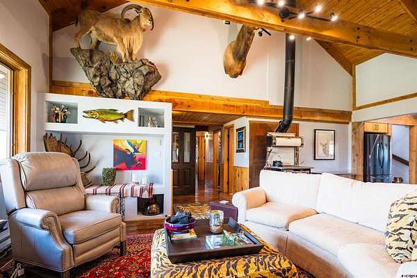 Brian Cooper, Bluebird Real Estate, LLC, C: 970-275-8022, brian@bbre1.com, www.crenmls.com: Welcome to a rare offering in the heart of Colorado's ranch country. Nestled between Gunnison and Saguache, Sheep Creek Ranch spans 270 acres of irrigated pasture, open meadows, and live water. This legacy property seamlessly combines luxury living, production, recreation, and natural beauty in one exceptional package. With year-round access via a county-maintained road, it's a true Western ranch ready for its next chapter. At the heart of the property sits a 3,909 sq. ft. luxury residence designed for both comfort and elegance. The home features two separate primary suites, each with newly renovated en-suite bathrooms and custom closets. The generously sized secondary bedrooms provide ample space for family and guests. Luxury finishes and thoughtful updates throughout create a sense of resort-style living, enhanced by sweeping views of the ranch and surrounding valley.Entertain with ease in the beautiful dining room with wine cellar, gather in the cozy TV room, or cook in the chef's kitchen, complete with a gas range and newer appliances. Outdoor living is just as inviting with expansive decks, a custom gazebo, and grilling areas perfect for summer evenings and gatherings.The ranch offers complete privacy, with no neighboring homes visible from anywhere on the property. It is further enhanced by its unique setting, bordering federal lands on 3 sides, ensuring unmatched seclusion and direct access to thousands of acres of public ground for recreation and grazing. Ranch improvements offer versatility and opportunity. A large barn provides a blank canvas for build-out into a guest house, bunkhouse, or home office. A dedicated guest cabin is also ready for interior completion to match your vision. In addition, a large concrete pad offers the ideal footprint for an additional barn, shop, or equipment storage facility. Agricultural infrastructure includes fencing, cross-fencing, and load-out chutes along the county road for easy cattle transfer. Approximately 100 acres of irrigated pasture support grazing or hay production. The property is powered and connected with grid electricity, propane, and Starlink internet for modern convenience. Sheep Creek itself winds through the ranch for nearly three miles, providing exceptional trout fishing, while three spring-fed ponds further enhance the natural beauty and usability of the land. The ranch is located in hunting unit 681 and comes with 2 land owner tags for mule deer. The wildlife on and around the ranch is incredible from deer, elk, bighorn sheep, and antelope there is never a dull moment. This is more than a ranch--it's a private, secluded compound offering a balance of agricultural utility, outdoor recreation, and refined mountain living. Sheep Creek Ranch stands as a true legacy property, set against the backdrop of Colorado's wild and open landscapes.