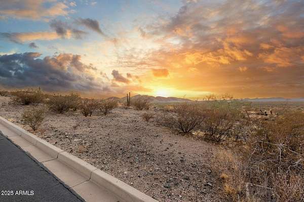 Experience extraordinary panoramic city light, sunset and mountain views from this exceptional almost 3/4 acre lot in Sonoran Mountain Ranch, a premier gated community in Peoria. A private setting that makes it feel like you're living in nature while still being close to the city. All utilities are already on-site making it even more convenient for building. The gently sloping lot, ideal for a walk-out basement, combined with no south-side neighbor and an angled north-side lot, gives you plenty of privacy. Sonoran Mountain Ranch is enhanced by the outdoor amenities, such as parks, sports courts, grassy areas, and walking trails.