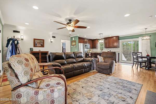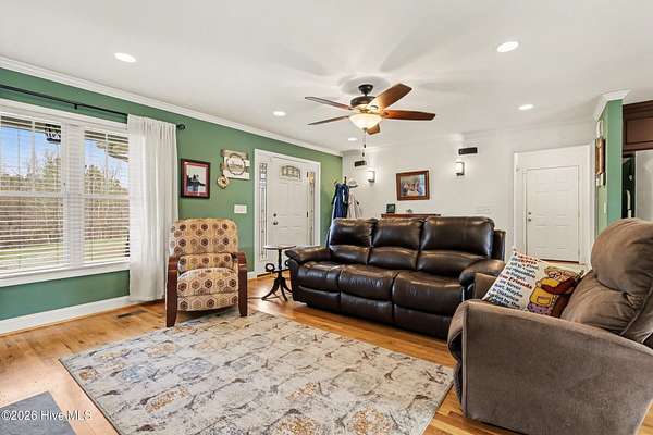 Welcome to your private country retreat! Nestled on approximately 16.64 acres, this beautiful property offers the perfect blend of modern comfort and peaceful rural living. Built in 2017, this well-maintained 3-bedroom, 2-bathroom home features approximately 1,620 square feet of thoughtfully designed living space. The open and inviting floor plan provides comfortable everyday living and ideal entertaining space. A cozy fireplace anchors the main living area, creating a warm and welcoming atmosphere. Surround sound speakers are included inside and out as a bonus. The kitchen offers ample custom cabinetry, granite countertops, and stainless steel appliances, along with a kitchen island that flows seamlessly into the dining and living areas. The spacious primary suite includes a large private en suite bath and 2 walk in closet spaces, while two additional bedrooms provide flexibility for family, guests, or a home office. Home has hardwood floors, laundry room with custom cabinets and perfect 1 level ranch living. Step outside and experience the true highlight of this property -- over 16 acres of land offering privacy, open space, and endless possibilities. Whether you're dreaming of a hobby farm, gardening, sunsets on the porches, walking, ATV riding, or simply enjoying the peaceful surroundings, this property delivers. Multiple garage spaces (attached and detached) plus additional Xlarge shed provides excellent storage for vehicles, equipment, or workshop needs. Home features a whole house generator plus a Hot Tub that stays with the home! Enjoy country living while still being conveniently located to shopping, dining, and major highways in Burlington. If you've been searching for acreage, privacy, and a move-in-ready home -- this is the one!