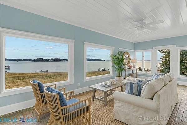 Wake up to breathtaking sunrises over the Rappahannock River, where hues of pink & gold reflect across the water & classic deadrise boats head out for the day's catch. Perfectly positioned at the mouth of Carters Creek, this charming Cape Cod offers expansive river views, exceptional boat watching, & a peaceful waterfront lifestyle. Enjoy your morning coffee from the stunning sunroom with brick floors & walls of windows framing endless water views. The home features hardwood & tile flooring throughout, a welcoming living room with a new gas log fireplace, a cozy family room, & a well-appointed kitchen. A 1st-floor bedroom with its own new gas log fireplace sits adjacent to a full bath, providing comfortable main-level living options. Upstairs, you'll find two additional bedrooms, a full bath, & two flexible bonus rooms ideal for storage, hobbies, a home gym, or guest overflow space. Outdoors, the private dock with approximately 3' MLW, protected rip-rap shoreline, & no flood zone designation offers peace of mind & easy access to the water. The spacious backyard includes a shed & plenty of room for gardening or even a future pool. An exceptional bonus: two additional buildable lots that both perk - retain them for added privacy, create a family compound, or sell individually. Located in the charming village of Weems, you're just minutes from Kilmarnock, White Stone, & Irvington, with convenient access to Richmond's airport in about an hour. No HOA restrictions. Notable improvements include a conditioned crawl space, tankless gas water heater, & much more. *See Featured Sheet