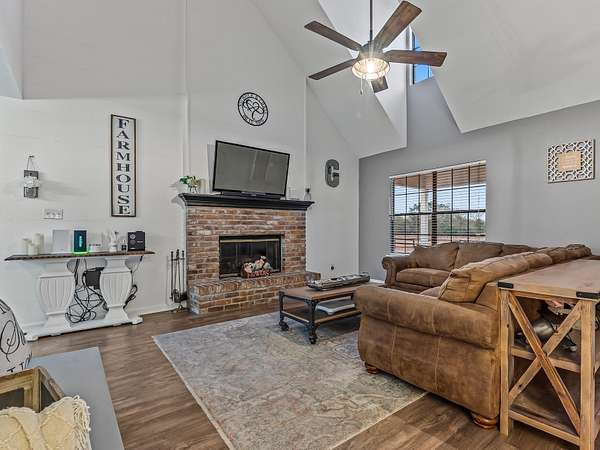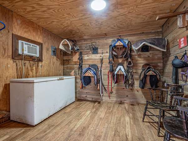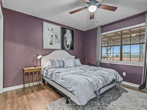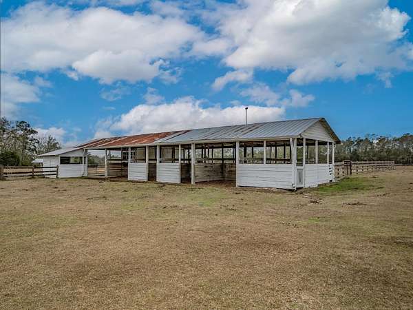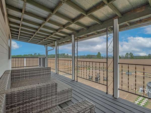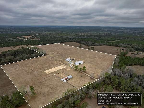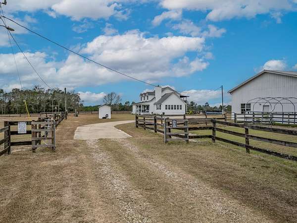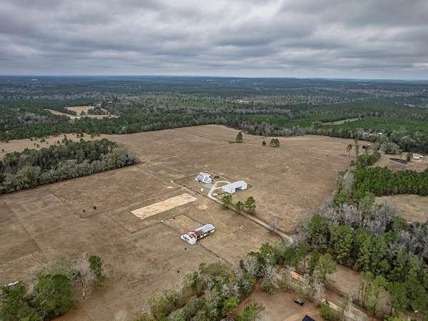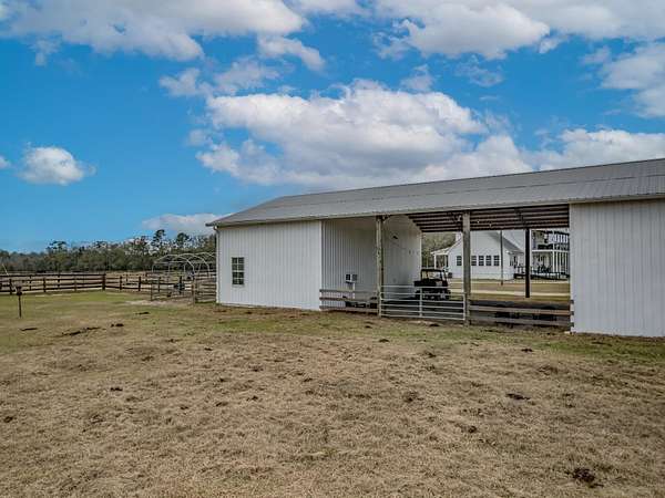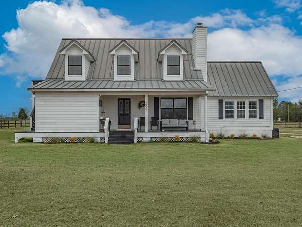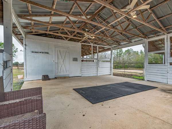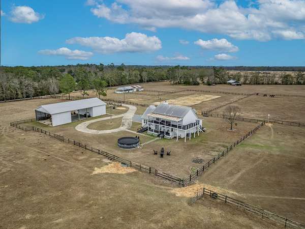 Discover the perfect blend of country charm and modern comfort on this beautifully maintained 30-acre farmhouse retreat. Tucked away on a quiet paved road and surrounded by wonderful neighbors, this property offers the peace, privacy, and space you've been dreaming of. Fully fenced and cross-fenced, the land is ideal for horses, livestock, or anyone seeking a true agricultural lifestyle. An impressive 11-stall barn anchors the farm, complete with electricity, an air-conditioned tack room, and automatic water troughs that service the pastures-making daily care effortless. A massive 100' x 40' workshop provides endless possibilities, whether you need storage, covered parking, or envision converting part of it into additional living or hobby space. The lovingly cared-for farmhouse has been thoughtfully updated inside and out. Fresh interior and exterior paint, updated bathrooms, and a refreshed kitchen featuring granite countertops, new upper cabinets, and a stylish backsplash create a warm, inviting atmosphere. With four bedrooms and two bathrooms, the home offers comfortable living space for family or guests. Property-wide surveillance adds peace of mind. Outdoors, enjoy raised vegetable garden beds, fruit trees, muscadine grapes, and an above-ground pool-perfect for cooling off on warm afternoons. Every corner of this property reflects pride of ownership and the joy of country living. If you're looking for a quiet, spacious, and fully equipped homestead ready for your animals, hobbies, and dreams, this farmhouse is truly one of a kind.