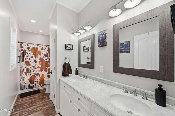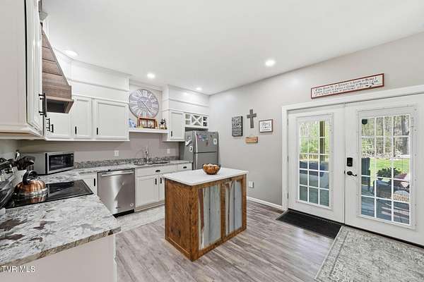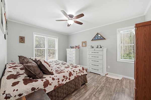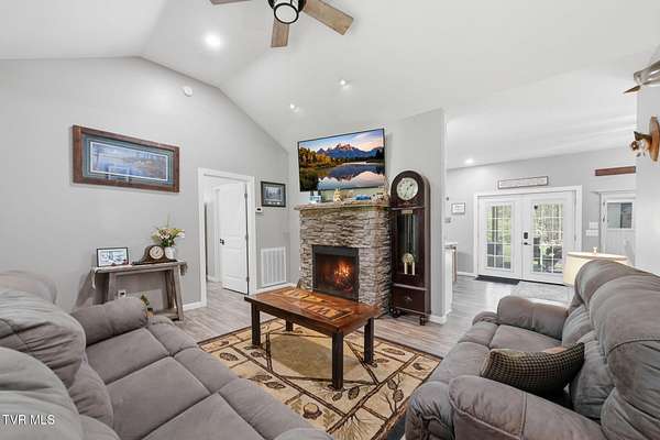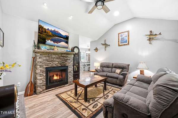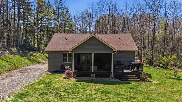 Tucked away on 3 SCENIC ACRES in Laurel Mountain Estates community, this thoughtfully designed 2-bedroom, 2-bath home offers a rare combination of privacy, modern finishes, and close proximity to Watauga Lake--just 3 minutes (1.3 miles) from Lakeview Marina. Spanning a total of 3.09 acres, the property includes a 1.53-acre homesite along with an additional 1.56-acre wooded parcel, creating a private, peaceful setting with room to expand or simply enjoy the surrounding nature. A gently winding gravel driveway leads you through mature trees, setting the tone for the quiet retreat that awaits. The home's exterior blends stone and siding for timeless curb appeal, while the spacious front porch provides the perfect spot to unwind and take in the tranquil surroundings. Inside, the open layout is enhanced by vaulted ceilings, luxury vinyl plank flooring, and a cozy stone gas fireplace that adds warmth and character to the main living space. The kitchen is both stunning and functional featuring custom full-height cabinetry, granite countertops, and stainless steel appliances. The dining area is highlighted by a wood accent wall and offers access to a hidden walk-in butler's pantry--an unexpected and highly functional feature with abundant shelving and storage. The primary suite is designed for comfort and convenience, offering a generous walk-in closet with direct access to the laundry room, complete with cabinetry, a utility sink, and a tankless water heater. The en-suite bathroom features dual vanities with marble countertops and updated fixtures. On the opposite side of the home, you will find a secondary bedroom and full bathroom. As you step outside you will enjoy the screened-in porch and the back deck overlooking the level, wooded backyard--providing the ideal setting for relaxing, entertaining, or simply enjoying the natural surroundings. Two detached storage sheds offer added flexibility for storage, hobbies, or equipment. With access to city water, fiber internet, and the potential for short-term rentals, this home offers an excellent opportunity for a primary residence, second home, or investment property--all in a highly desirable location near Watauga Lake. **Lot lines depicted in listing photos are approximate and for illustrative purposes only. All information is herein deemed reliable but subject to buyer/buyer's agent verification.