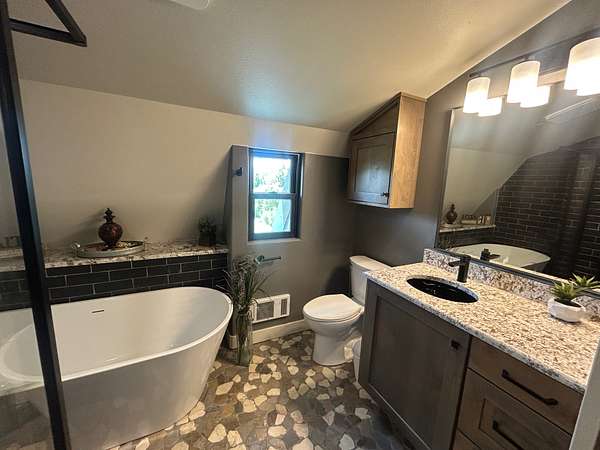 This beautiful home has been remodeled down to the studs. It features brand-new electrical and plumbing, new radiant baseboard heat, a pellet stove, foam-sprayed insulation, and brand-new kitchen appliances. There is also a main living room as well as a family room downstairs. The basement is equipped with an extra-large room that can be used for a quiet office or craft room.