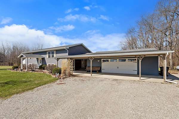 Wow! This one is sure to check a TON of boxes on your wish list! This 2600 sqft 4 bed/2 bath home has been updated through out! The main level offers a remodeled kitchen with a full SS appliance pkg included. The enormous 12 x 24 knotty pine 3 seasons porch overlooks the vast 9.6 acre property and is wired for a future hot tub! The primary suite offers a spacious bedroom , a full bath and a HUGE walk in closet! The bright living room faces South giving you TONS of natural light! The lower level has (2) separate staircases ( both recently redone). This level offers 3 spacious bedrooms, a full bath and a family/rec room. The home had a brand new roof in in October 2025 and all new gutters last month! Have toys? A covered 12 x 18 knotty pine breezeway ( that could easily be enclosed for a mud room) leads the way to the attached 24 x 30 garage. This garage offers both front and rear overhead doors and a full length covered porch! Need more space? Well check out the additional 24 x 30 garage! This garage also has (2) overhead doors for ease of getting vehicles and equipment in & out. For the horse lovers..... a 30 x 45 pole barn awaits! This barn will hold 3 or 4 stalls and has the posts installed for a pasture area. Out back there is a small pond and woods, you guessed it.. there is no shortage of wildlife passing through here! Located just South of 10 on 55, making access to either I65 or Rte 41 a breeze!