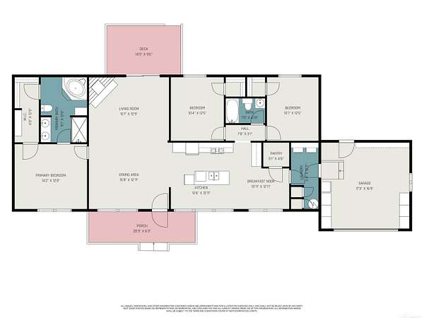 - Bathroom x 2, Bedroom x 3, Dining Room, Kitchen, Laundry, Living Room