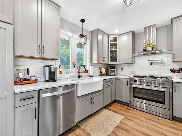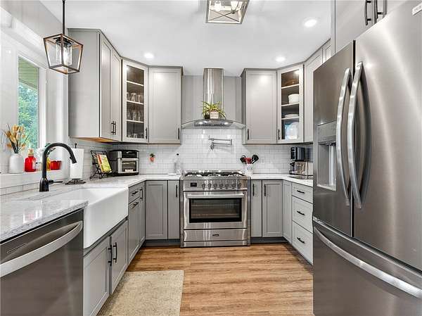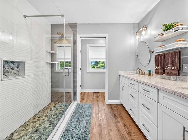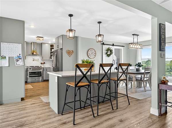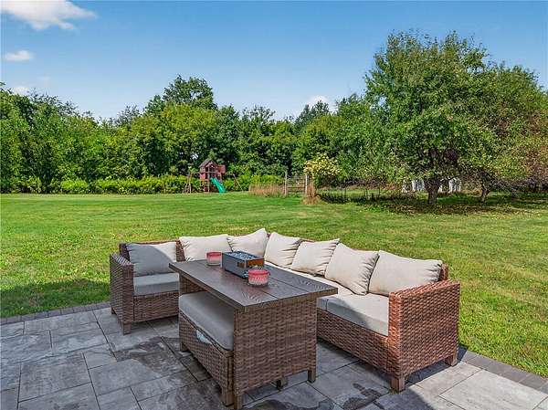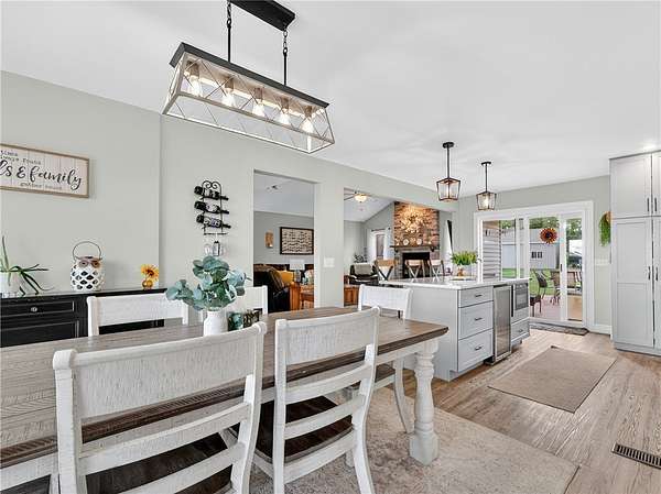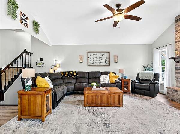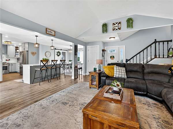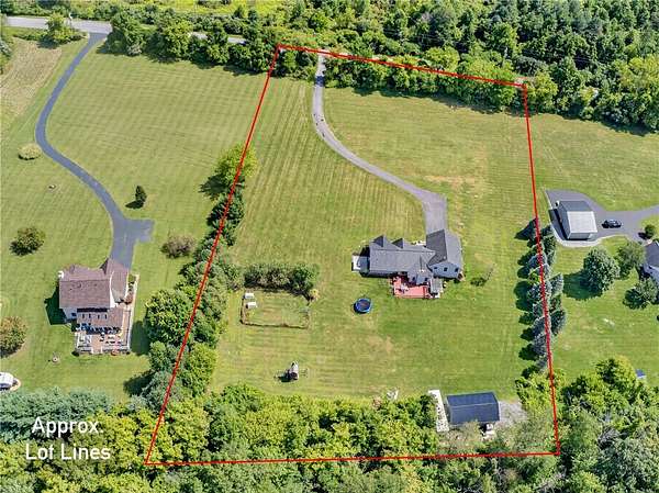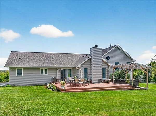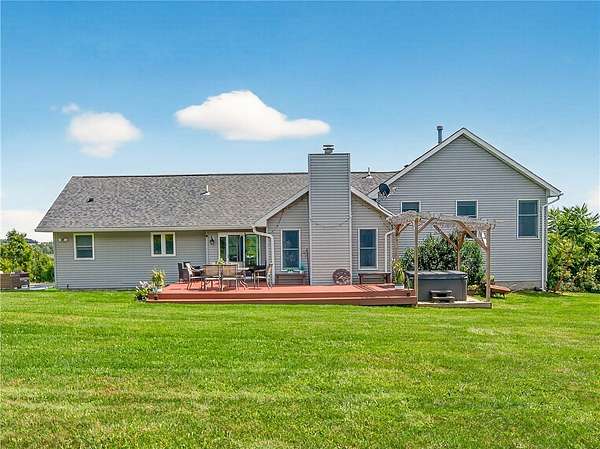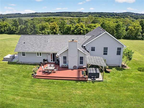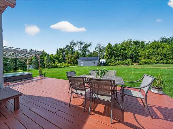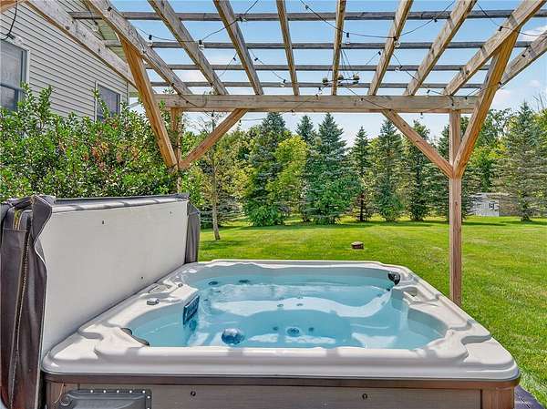 Stylishly updated split-level home with contemporary features, set on a scenic and spacious 3-acre lot offering beautiful views and added privacy. A recent addition (2022) showcases a stunning open-concept kitchen and dining area with both island seating and space for a full dining table, along with a convenient first-floor primary suite featuring a private en suite bath. This 4-bedroom, 3-bath home is set back from the road and partially bordered by mature trees, creating a natural buffer and peaceful setting. The bright, updated kitchen features a farmhouse sink, subway tile backsplash, solid surface countertops, and a full suite of stainless steel appliances-including a refrigerator, dishwasher, drawer microwave, wine chiller, and stove with pot filler and hood vent. Sliding glass doors lead to a large rear wooden deck complete with a pergola-covered hot tub-perfect for relaxing or entertaining. Outdoor living continues with a side patio finished with pavers and inviting seating areas overlooking both the front and back yards. Inside, spacious living room offers a vaulted ceiling with fan and a wood burning fireplace highlighted by a floor-to-ceiling natural stone mantel, raised hearth, and surround. Lower level/basement area has finished space that can be used as an office, family room or convert to another bedroom. The covered front porch entry features a hard-scaped, stepped walkway leading from the attached two-car garage and paved driveway. Home access inside entry from this garage as well. In addition, a versatile pole barn/garage is heated with electric in the backyard offering endless possibilities for extra parking (up to two vehicles), extra storage, a workshop, or even a home gym. Ideally located in Avon, this property offers the perfect blend of peaceful country living with convenient access to local amenities, schools, and commuter routes. Delayed showings until April 17 at 1pm. Delayed negotiations until April 21 at 6pm. Open house - Saturday, April 18th and Sunday, April 19th from 1pm to 3pm.