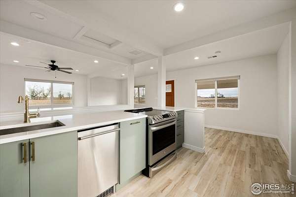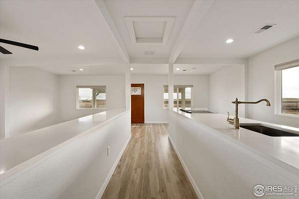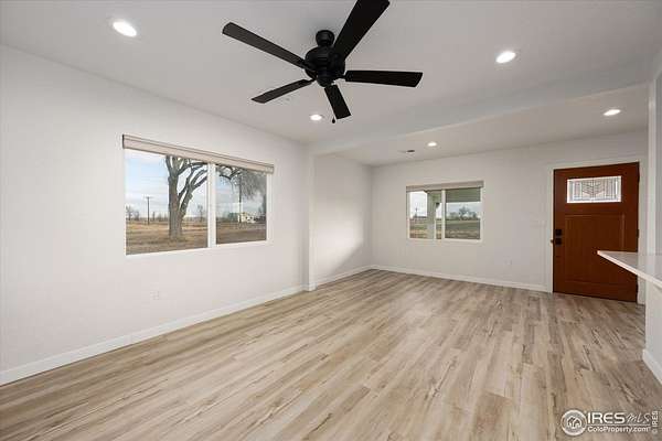 Est $2,766/moThis lovely stucco farmhouse with exraordinary views is totally redone and situated on 2.05 acres in Kersey school district. Modern finishes complete with quartz countertops, and new cabinetry including a refrigerator built in with cabinet finish. Luxury Bathrooms / farm house finishes. Home features 3 bedrooms, 2 baths, with flex office space or 4th bedroom. Dairy barn provides a lot of character/ chicken coop/Corral perfect for your county lifestyle. Off paved road and just off Weld County Prkway for easy commuting! New roof, stamped concrete covered patio, new windows, furnace, air conditioner, electrical make it ready for you to move into. NO HOA! Basement for storage!