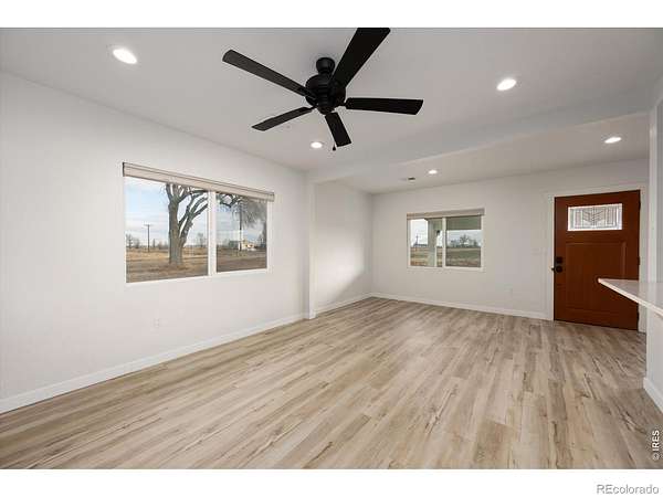 Est $2,603/moThis lovely stucco farmhouse with exraordinary views is totally redone and situated on 2.05 acres in Kersey school district. Modern finishes complete with quartz countertops, and new cabinetry including a refrigerator built in with cabinet finish. Luxury Bathrooms / farm house finishes. Home features 3 bedrooms, 2 baths, with flex office space or 4th bedroom. Dairy barn provides a lot of character/ chicken coop/Corral perfect for your horses and livestock. Off paved road and just off Weld County Prkway for easy commuting! New roof, stamped concrete covered patio, new windows, furnace, air conditioner, electrical make it ready for you to move into. NO HOA! Basement for storage!