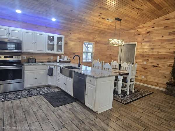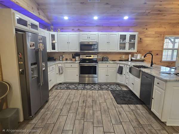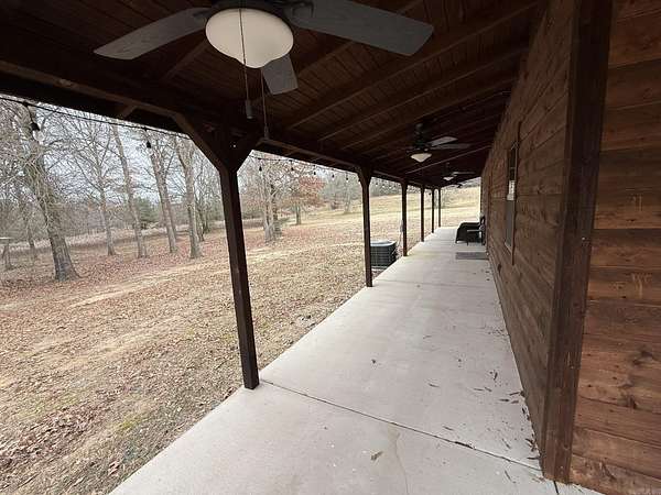 Nearly new construction built in 2024, this beautiful 3-bedroom, 2-bath home sits on 20.06 private acres with a durable metal roof and peaceful rural setting. The property is fenced on three sides and adjoins Weyerhaeuser land, offering exceptional privacy. A scenic creek runs through the back of the property, and abundant wildlife can be enjoyed from the expansive wraparound porch. Inside, the open-concept floor plan features modern finishes and a stunning floor-to-ceiling rock fireplace with a wood mantle. The kitchen and bathrooms offer quartz countertops, stainless steel appliances, and a functional layout designed for comfort and long-term value. The primary suite is privately located and includes a large walk-in closet with built-ins and a spacious walk-in tile shower. Adding incredible value is a newly built 40x80 insulated shop (2025) with 16-foot walls, reinforced concrete floor, two 14x14 insulated doors, man doors, windows, and closed cell foam insulation ideal for storage, business use, or income potential. Located just minutes from Lake Greeson, Dierks Lake, and campgrounds, this turnkey property offers privacy, versatility, and investment appeal.