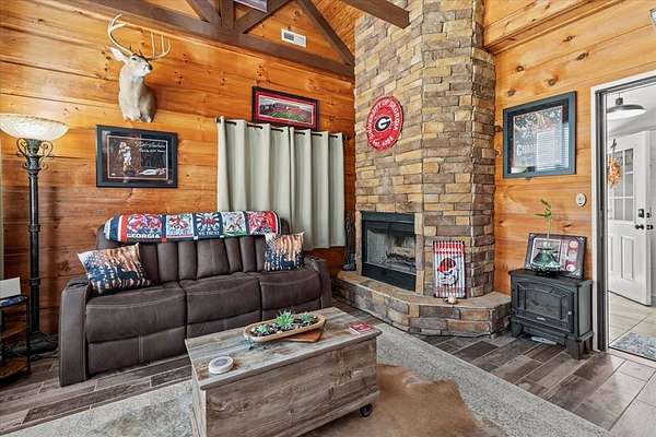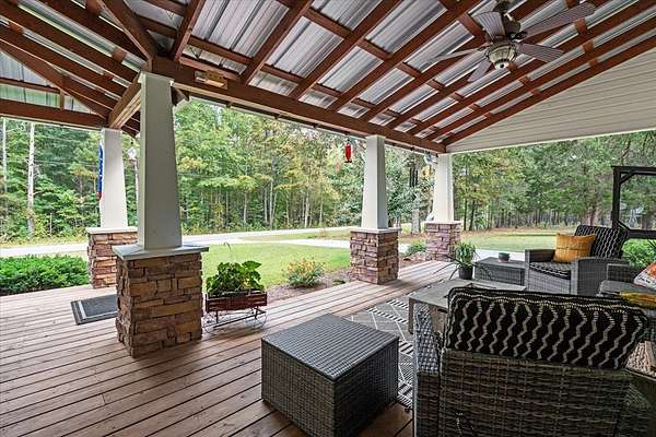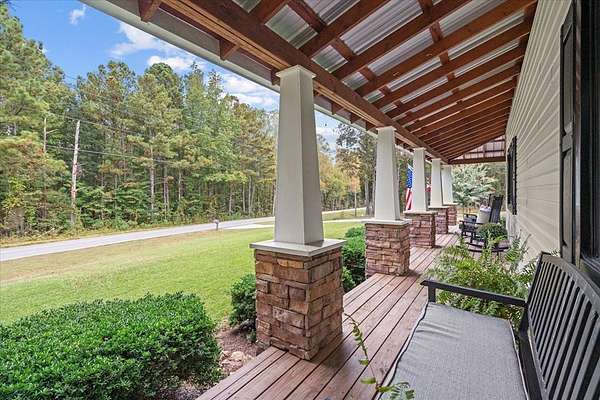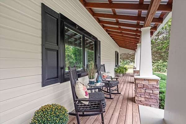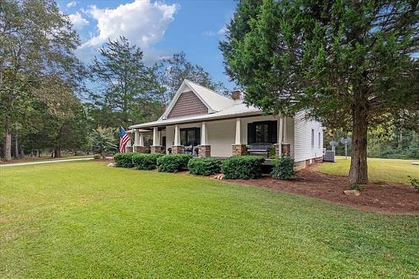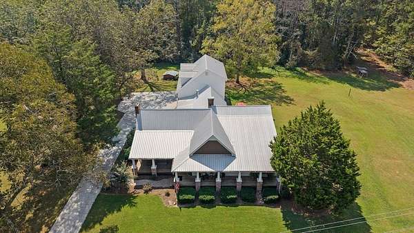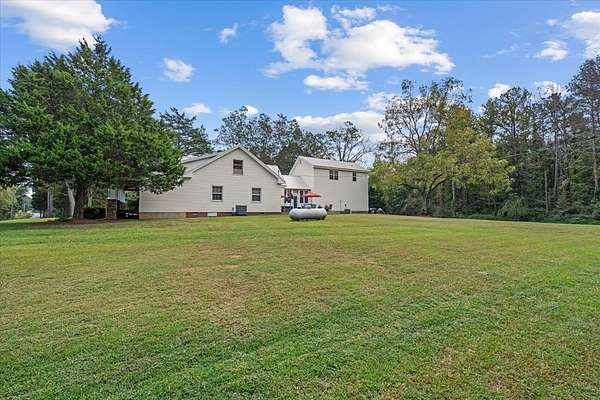 This 5-bedroom, 3-bath Southern farmhouse, sitting on almost 8 acres, has been completely transformed, blending 1900s charm with modern convenience. Every detail has been updated, including all new interior doors, a new back deck, a covered front porch with stone accents, a solid wood front door, a replaced gas and septic system and lines, 4 total fireplaces with 3 new electric inserts and one wood burning fireplace. Even a new concrete driveway, the upgrades go on and on. Step inside to a spacious main living area where natural light pours in through the brand-new windows, highlighting the fresh paint, updated finishes, and timeless farmhouse character. The flow leads seamlessly into the kitchen, fully updated with modern hardware, tile, and thoughtful details, including a wine fridge that makes it both functional and stylish, perfect for gathering around meals or entertaining with ease. Just beyond, the sunroom offers a cozy retreat where you can sip morning coffee or unwind in the evenings while overlooking the property's sprawling acreage. With windows all around, it feels like the outdoors are part of your living space year-round. An oversized two-car garage with extra depth provides plenty of room for vehicles, storage, or even a boat. Above the garage, you'll find a thoughtfully designed additional living space complete with a spacious living room/ office, bedroom, and full bath. Whether you need a home office setup, a guest suite, or a retreat for a college student or in-law, this versatile space offers endless possibilities. This is truly a timeless farmhouse with a fresh new story ready for its next chapter.