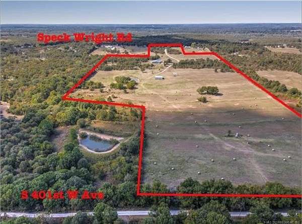 Turner Turnpike to Hwy 33 (west 121st St) to Drumright. Hwy 48 to Hwy 51 to 51 then 3.3 miles to Speck Wright Rd. Go 1.2 miles to property on your right, to the rust colored pipe fencing.