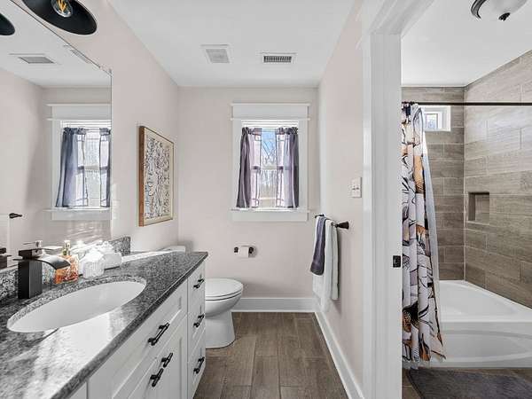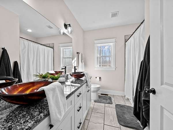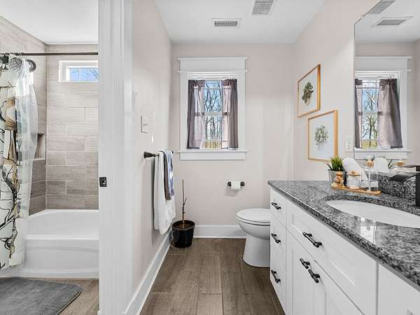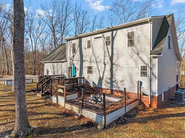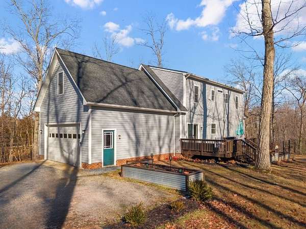 Privacy, acreage, and modern living meet in the heart of eastern Powhatan. Tucked away on over 4 acres of hardwoods, this 2019-built home offers the ultimate retreat with no HOA restrictions. It's the perfect blend of a move-in-ready modern interior and an expansive outdoor canvas ready for your detached garage, workshop, or hobby farm dreams. The interior is designed for flow - open-concept first floor designed for modern living. The kitchen is a chef's delight, featuring a functional island and upgraded slate appliances that convey. The layout flows seamlessly into the dining area, where sliding glass doors lead to a rear deck overlooking your private, expansive backyard. The living space is a true "flex" area--fully customizable to your furniture needs and lifestyle. Anchored by a first-floor primary suite that makes one-level living a reality. The private en suite features a tiled walk-in shower and a spacious L-shaped walk-in closet. Upstairs, the layout offers incredible flexibility with 3 oversized rooms. This includes a massive 4th bonus room. Upper-level bathroom is a standout for privacy, featuring a split design with a shared tub area and separate vanities & toilets.